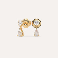 עגילי יהלום טיפה תלויים, משובצים 1 קראט יהלומים סה״כ בזהב צהוב 14K. בעיצוב קלאסי ונצחי המתאים לענידה יומיומית.