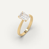 טבעת אירוסין עם יהלום מעבדה אמרלד 2 קראט, משובצת בזהב צהוב 14K. טבעת היהלום מגיעה בעיצוב סוליטר קלאסי ונצחי מקולקציית טבעות האירוסין מבית המעצבת שירי אודיז ובייצור 100% כחול לבן.