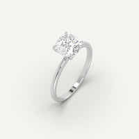 טבעת אירוסין עם יהלום מעבדה קושן 2 קראט, משובצת בזהב לבן 14K. טבעת היהלום מגיעה בעיצוב סוליטר קלאסי ונצחי מקולקציית טבעות האירוסין מבית המעצבת שירי אודיז ובייצור 100% כחול לבן.