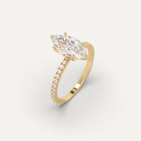 טבעת אירוסין עם יהלום מעבדה מרקיזה 2 קראט, משובצת בזהב צהוב 14K. טבעת היהלום מגיעה בעיצוב סוליטר עם יהלומים קלאסי ונצחי מקולקציית טבעות האירוסין מבית המעצבת שירי אודיז ובייצור 100% כחול לבן.