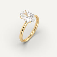 טבעת אירוסין עם יהלום מעבדה אובל 3 קראט, משובצת בזהב צהוב 14K. טבעת היהלום מגיעה בעיצוב סוליטר עם יהלומים קלאסי ונצחי מקולקציית טבעות האירוסין מבית המעצבת שירי אודיז ובייצור 100% כחול לבן.