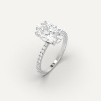 טבעת אירוסין עם יהלום מעבדה אובל 4 קראט, משובצת בזהב לבן 14K. טבעת היהלום מגיעה בעיצוב סוליטר עם יהלומים קלאסי ונצחי מקולקציית טבעות האירוסין מבית המעצבת שירי אודיז ובייצור 100% כחול לבן.