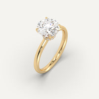 טבעת אירוסין עם יהלום מעבדה עגול 4 קראט, משובצת בזהב צהוב 14K. טבעת היהלום מגיעה בעיצוב סוליטר עם יהלומים קלאסי ונצחי מקולקציית טבעות האירוסין מבית המעצבת שירי אודיז ובייצור 100% כחול לבן.