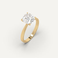 טבעת אירוסין עם יהלום מעבדה קושן 5 קראט, משובצת בזהב צהוב 14K. טבעת היהלום מגיעה בעיצוב סוליטר קלאסי ונצחי מקולקציית טבעות האירוסין מבית המעצבת שירי אודיז ובייצור 100% כחול לבן.