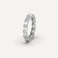 אלגנטיות עדינה ומתפרצת- טבעת איטרניטי בשיבוץ "מזרח ומערב" של יהלומים בחיתוך אמרלד. היהלומים משובצים בטבעת זהב לבן בעובי 3 מ"מ באופן ייחודי ובצורה מאוזנת, בעיצוב המציע נוחות מקסימלית לצד וורסטיליות ורב גוניות- המאפשרות ענידה של הטבעת בלבוש יום יומי או במראה ערב נוצץ.