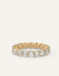 טבעת האיטרניטי העל זמנית מציגה מעגל עדין ואין סופי של יהלומים תואמים על רקע זהב צהוב ואלגנטי. הכתרים הנמוכים בעיצוב מינימליסטי עוצבו לנוחות מקסימלית והופכים את הטבעת לפרקטית ויוקרתית כאחד.