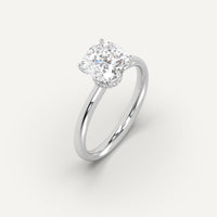 טבעת אירוסין עם יהלום מעבדה קושן 5 קראט, משובצת בזהב לבן 14K. טבעת היהלום מגיעה בעיצוב סוליטר עם יהלומים קלאסי ונצחי מקולקציית טבעות האירוסין מבית המעצבת שירי אודיז ובייצור 100% כחול לבן.