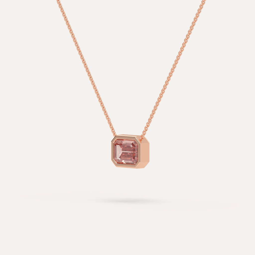 שרשרת יהלום ורוד מרחף עם מסגרת זהב, 1 קראט אמרלד