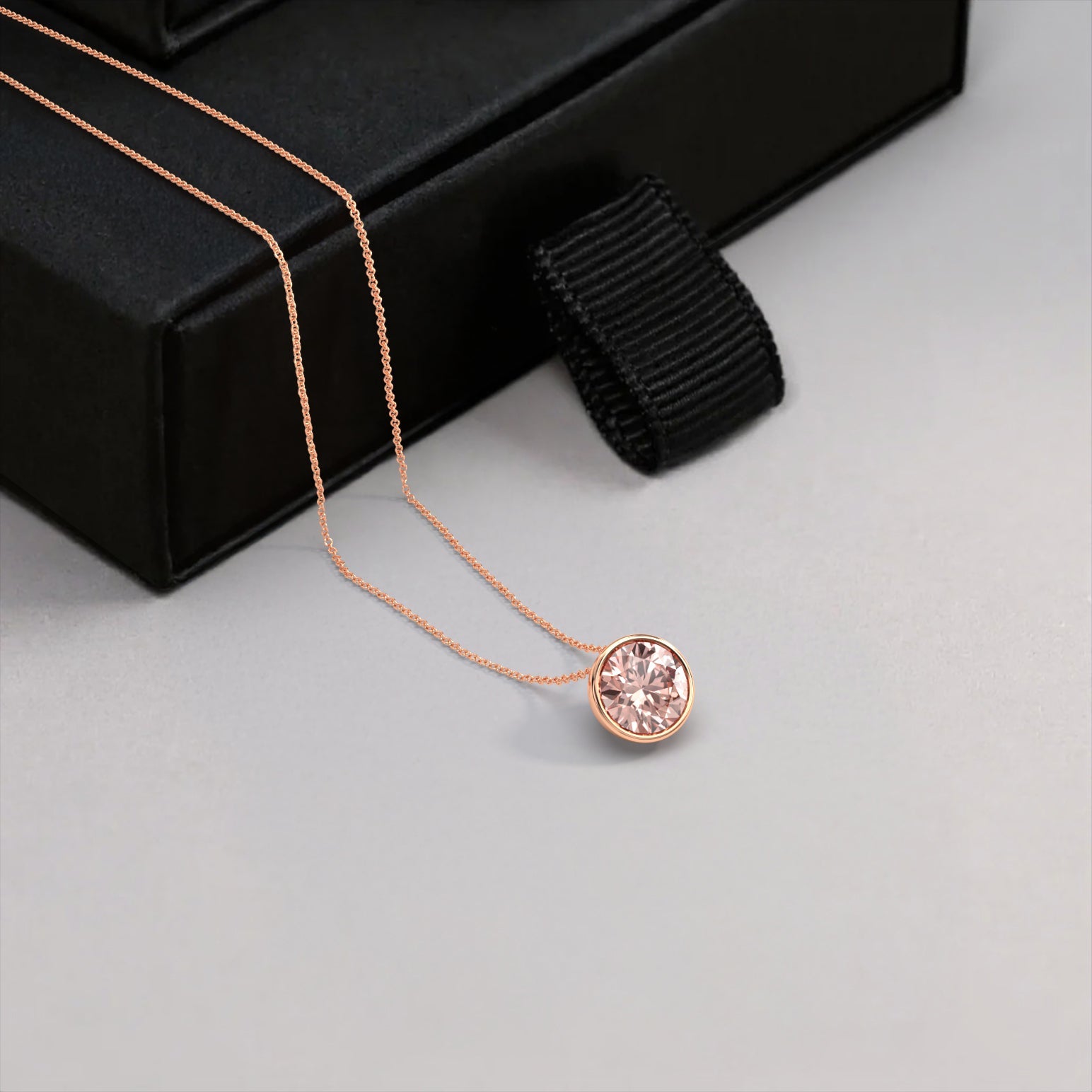 שרשרת יהלום ורוד מרחף עם מסגרת זהב, 1/2 קראט עגול