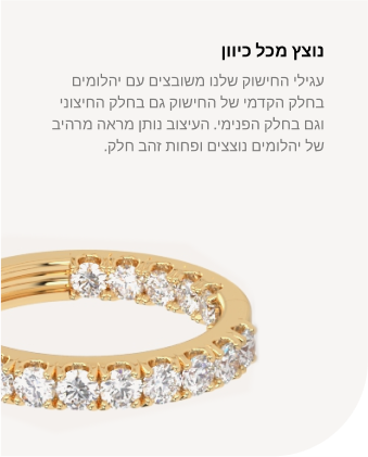 עגילי חישוק יהלומים, משובצים 1/2 קראט יהלומים סה״כ בזהב לבן 14K העגילים מגיעים בקוטר 14מ״מ בעיצוב קלאסי ונצחי המתאים לענידה יומיומית.