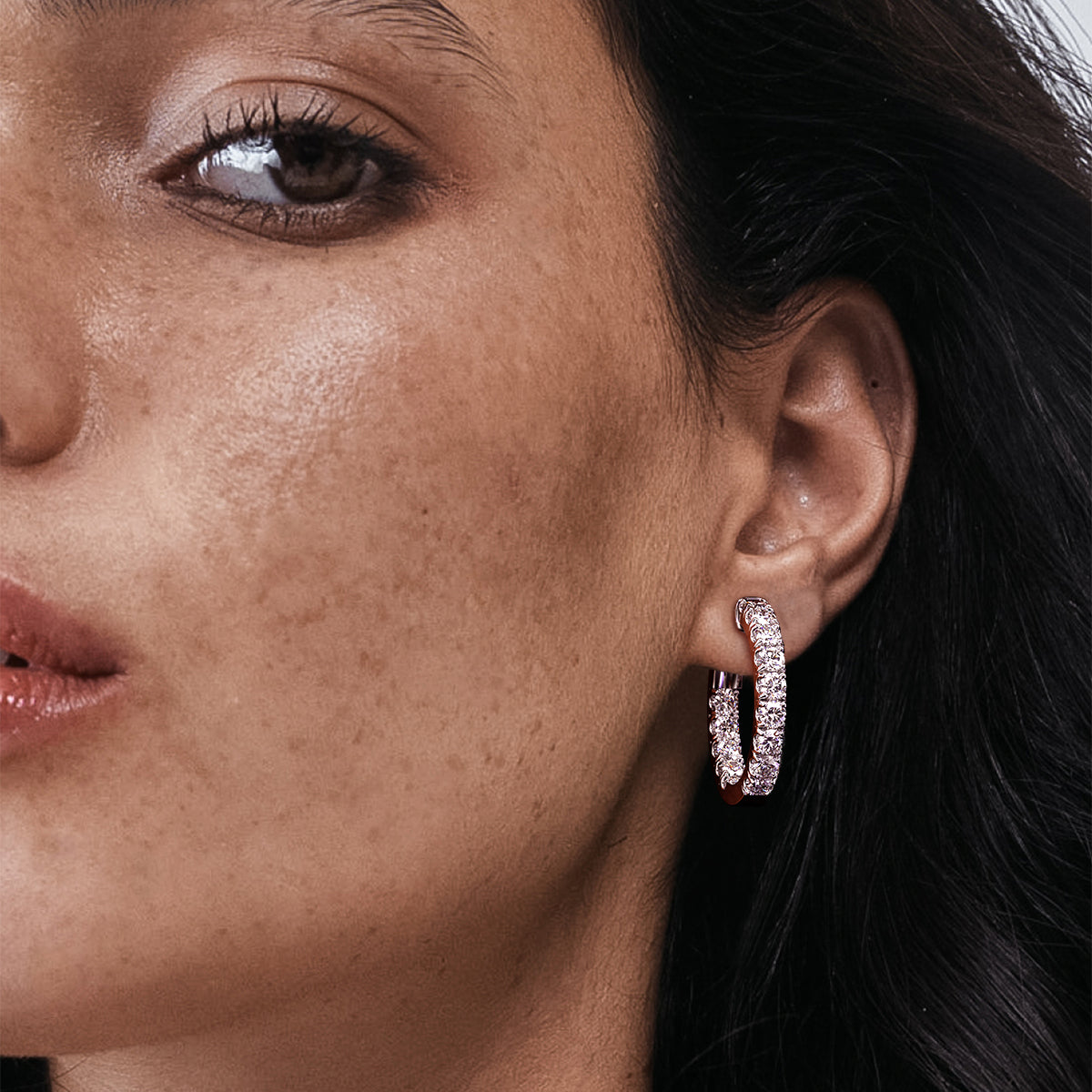 עגילי חישוק יהלומים, משובצים 4 קראט יהלומים סה״כ (2 קראט כל עגיל) בזהב לבן 14K העגילים מגיעים בקוטר 30מ״מ בעיצוב קלאסי ונצחי המתאים לענידה יומיומית.