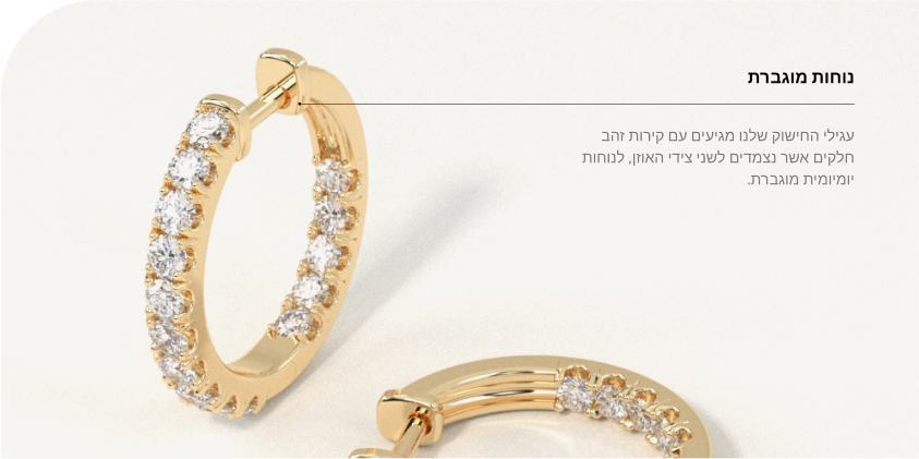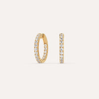 עגילי חישוק יהלומים, משובצים 1 קראט יהלומים סה״כ בזהב צהוב 14K העגילים מגיעים בקוטר 18מ״מ בעיצוב קלאסי ונצחי המתאים לענידה יומיומית.