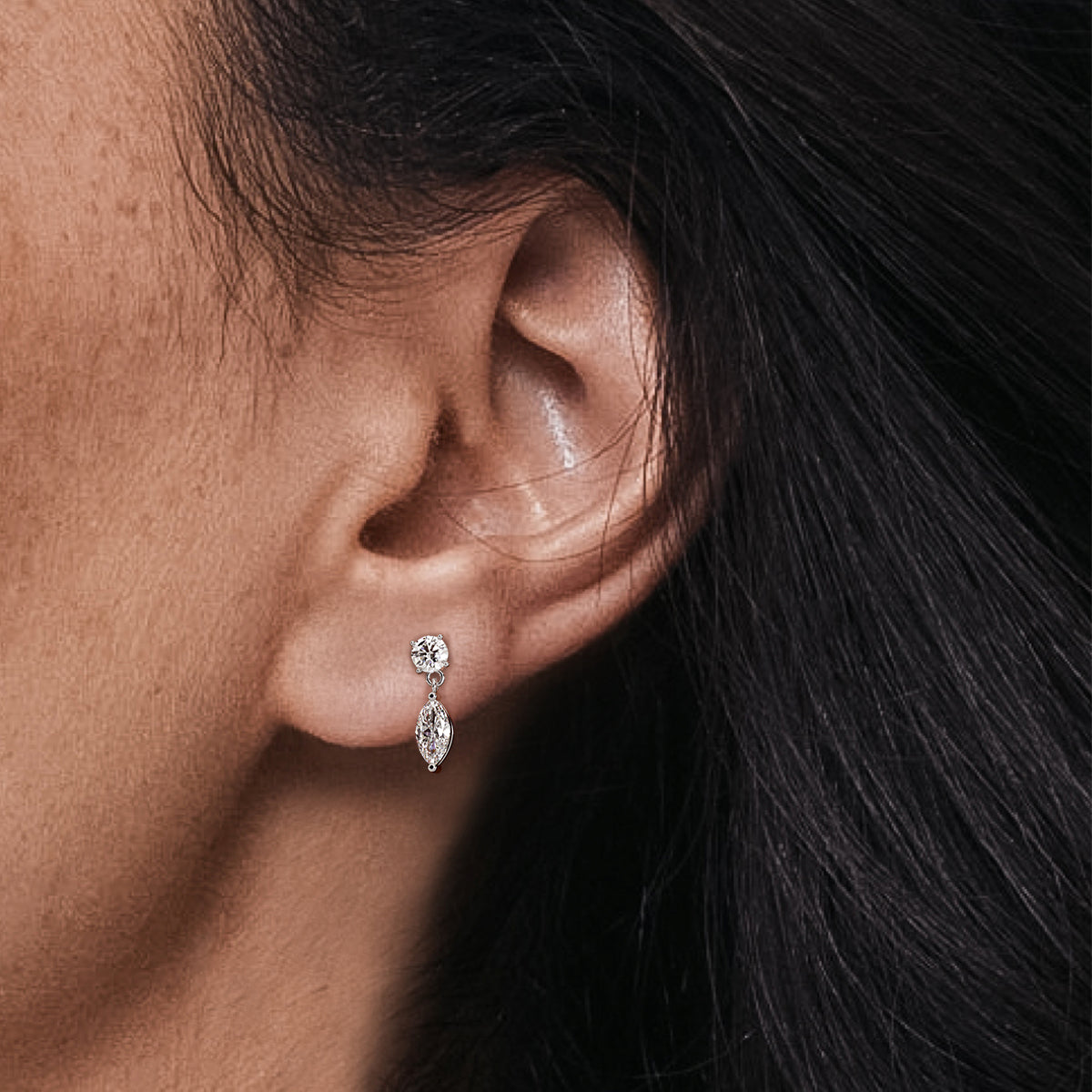 עגילי יהלומים תלויים 1 קראט מרקיזה
