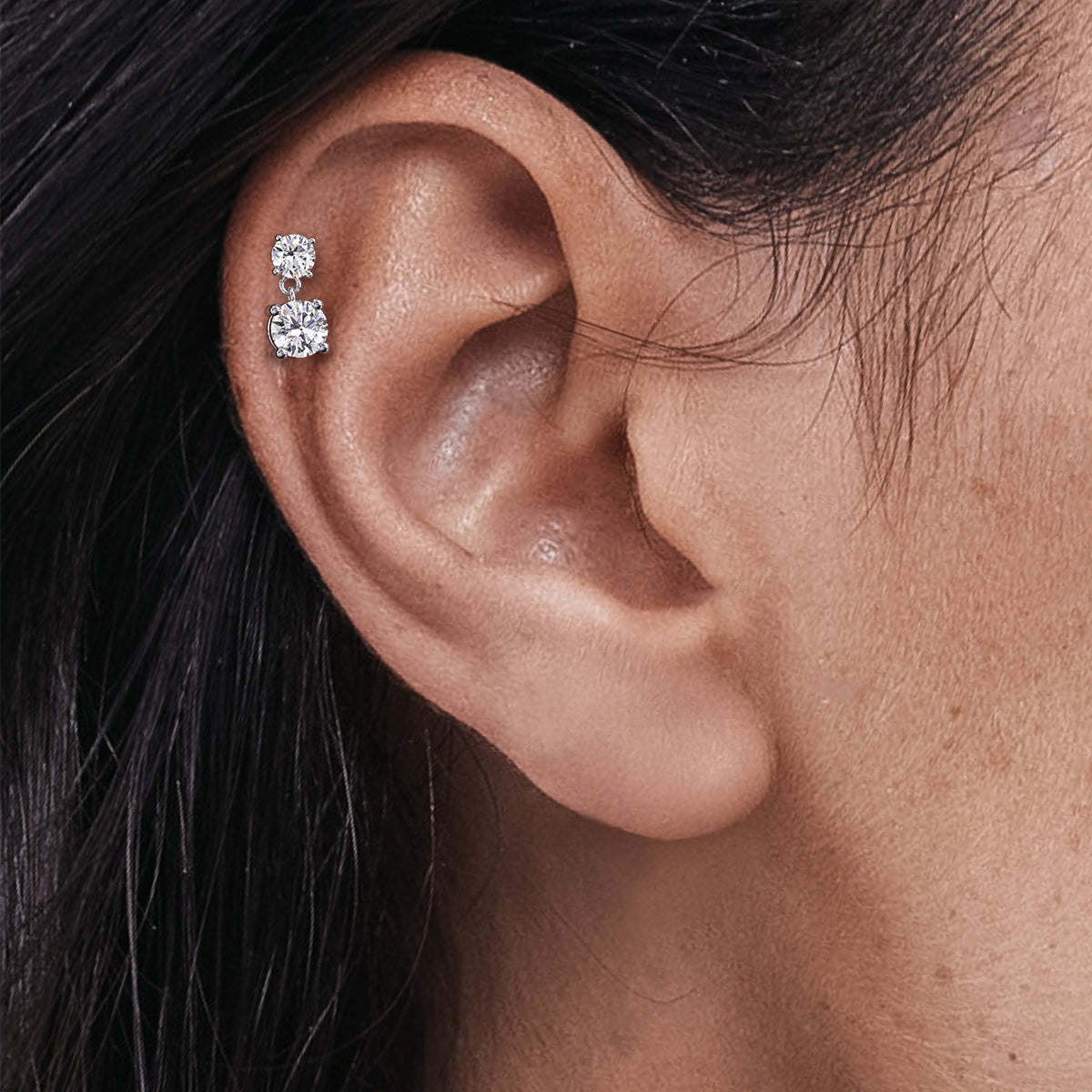 עגילי יהלום עגול תלויים, משובצים 1 קראט יהלומים סה״כ (1/2 קראט כל עגיל) בזהב לבן 14K. בעיצוב קלאסי ונצחי המתאים לענידה יומיומית.