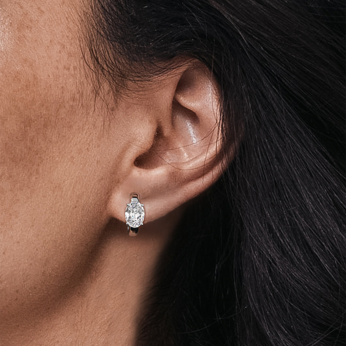 עגילי חישוק יהלומים סוליטר, משובצים 2 קראט יהלומים סה״כ (1 קראט כל עגיל) בזהב לבן 14K העגילים מגיעים בעיצוב קלאסי ונצחי המתאים לענידה יומיומית.