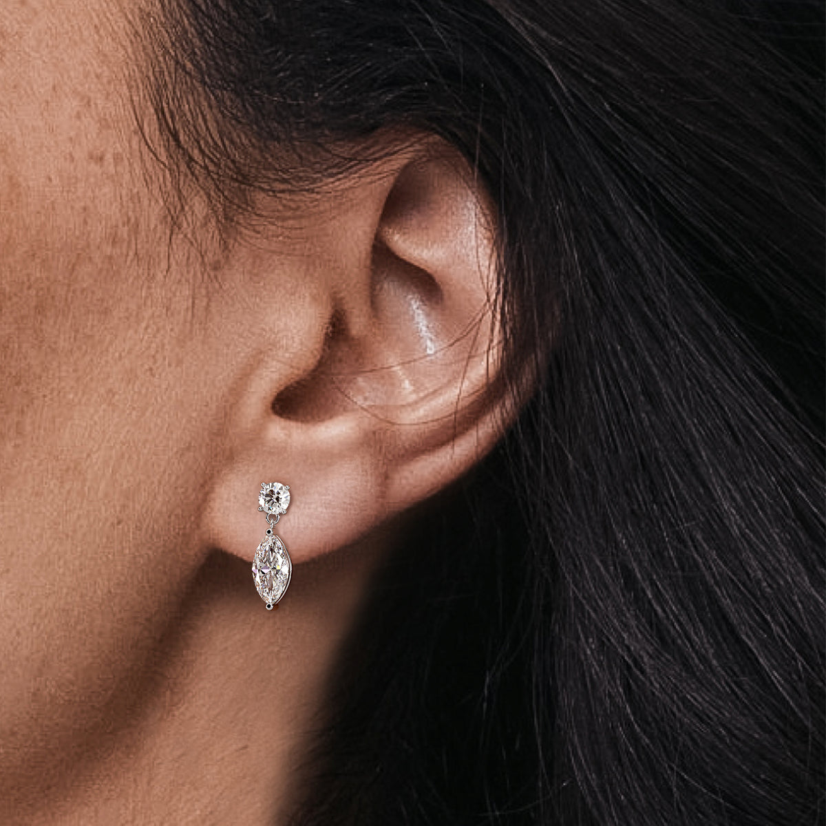 עגילי יהלומים תלויים 2 קראט מרקיזה