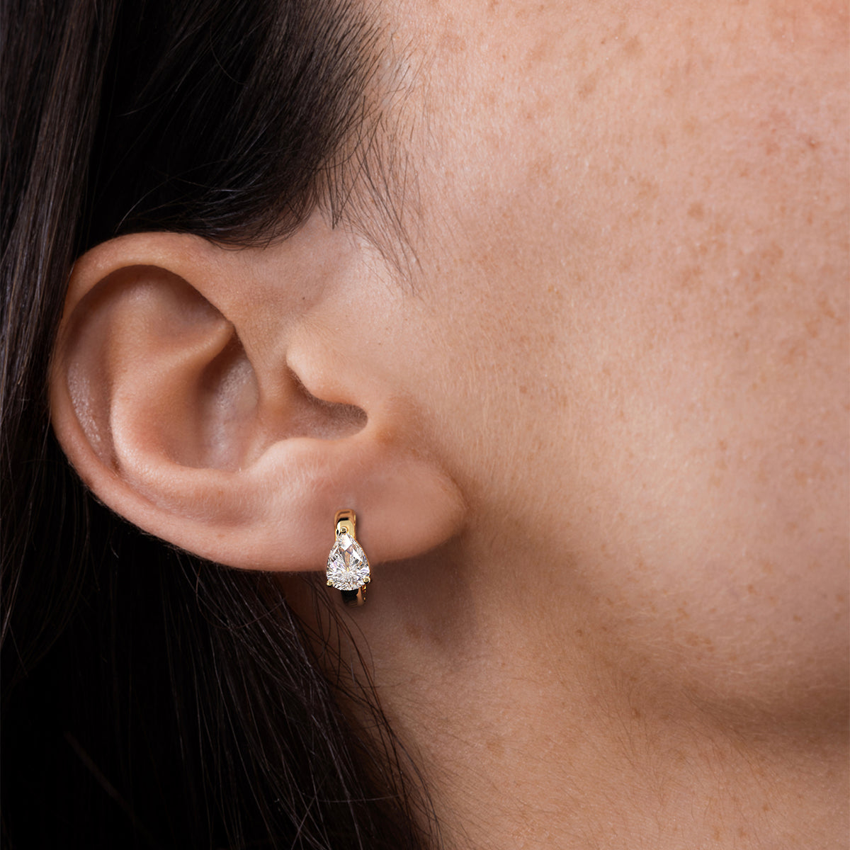 עגילי חישוק יהלומים סוליטר, משובצים 2 קראט יהלומים סה״כ (1 קראט כל עגיל) בזהב צהוב 14K העגילים מגיעים בעיצוב קלאסי ונצחי המתאים לענידה יומיומית.