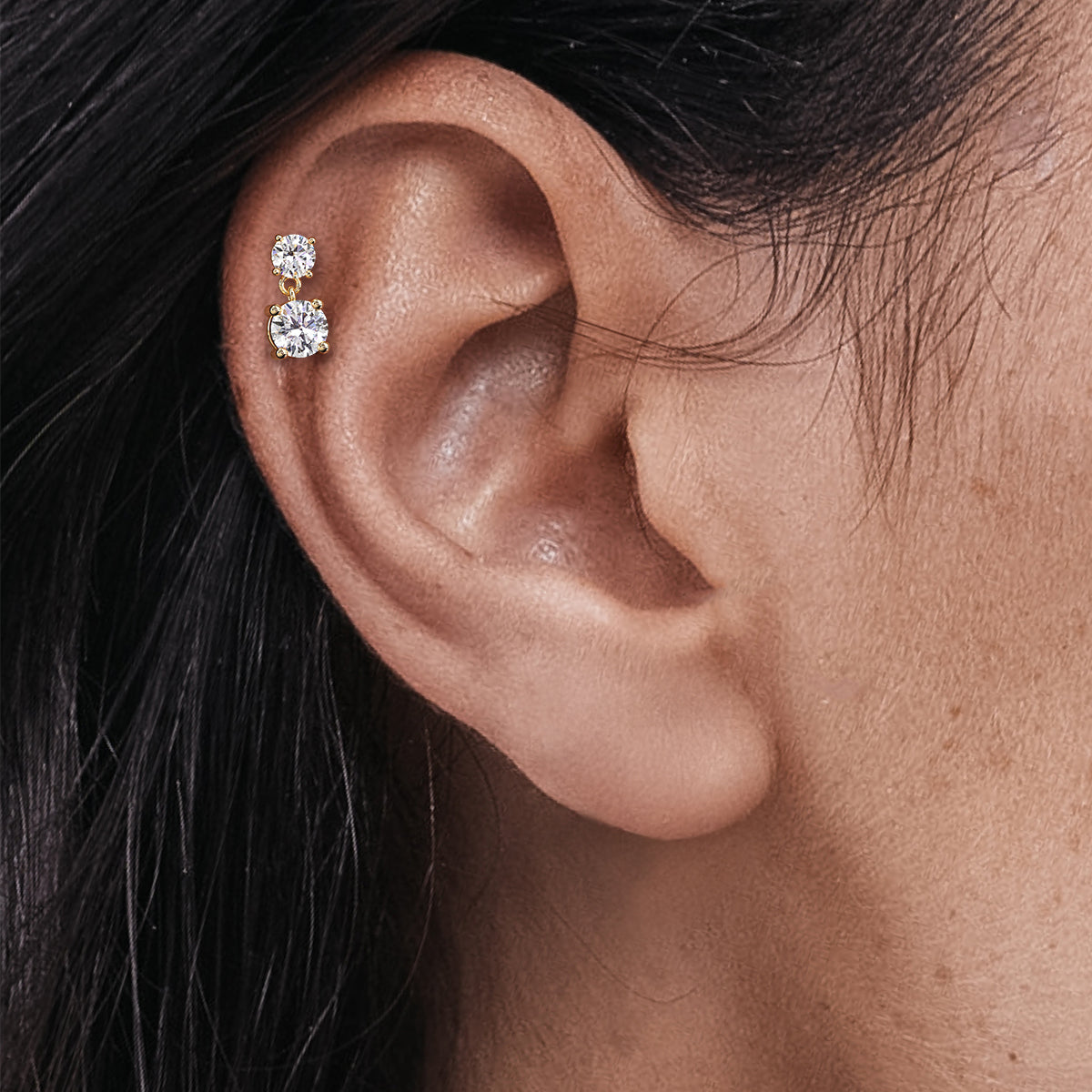 עגילי יהלום עגול תלויים, משובצים 1 קראט יהלומים סה״כ (1/2 קראט כל עגיל) בזהב צהוב 14K. בעיצוב קלאסי ונצחי המתאים לענידה יומיומית.