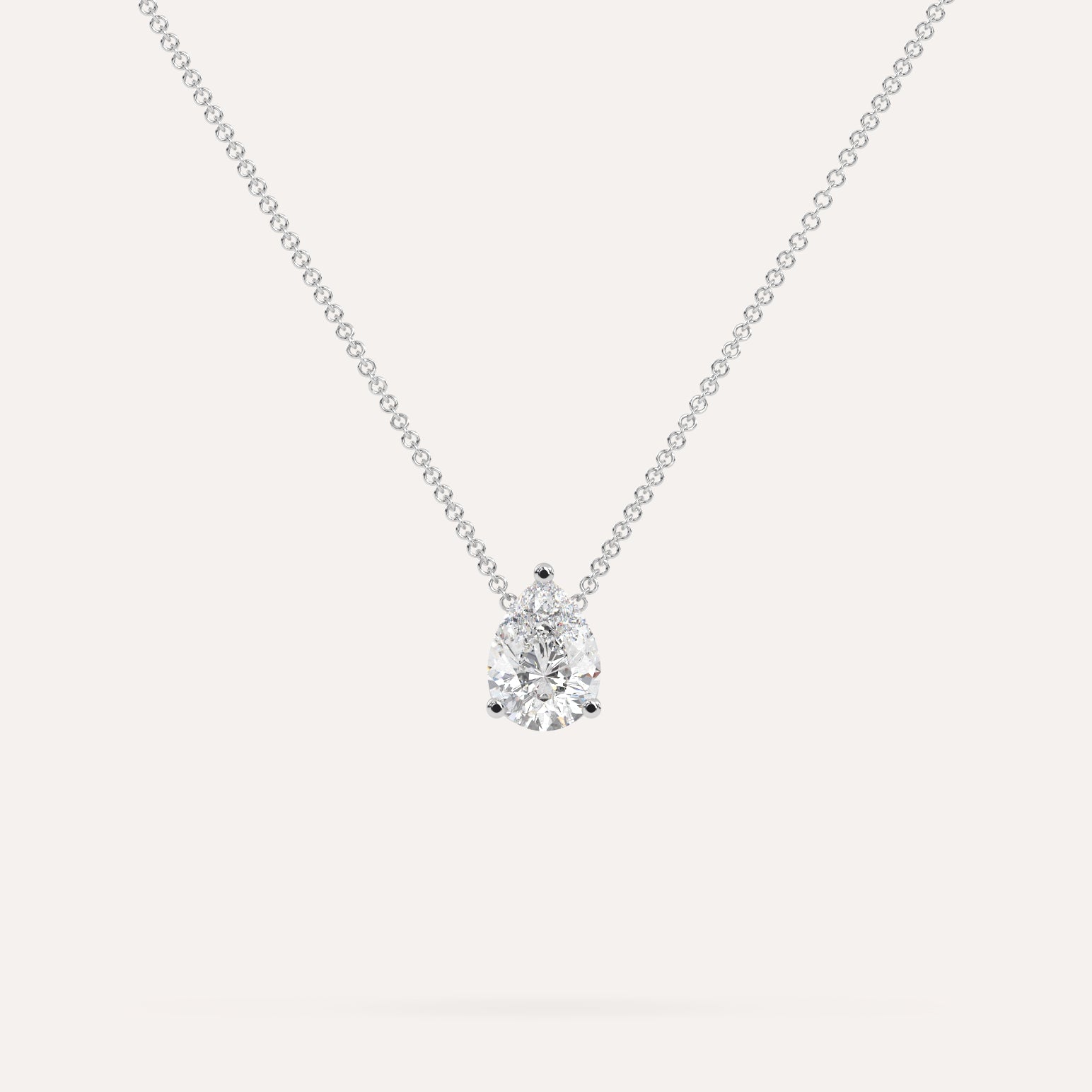 שרשרת יהלום מרחף המשובצת יהלום טבעי 1 קראט טיפה בזהב לבן 14K. השרשרת מגיעה בעיצוב קלאסי, מיוצרת בעבודת יד כחול לבן.