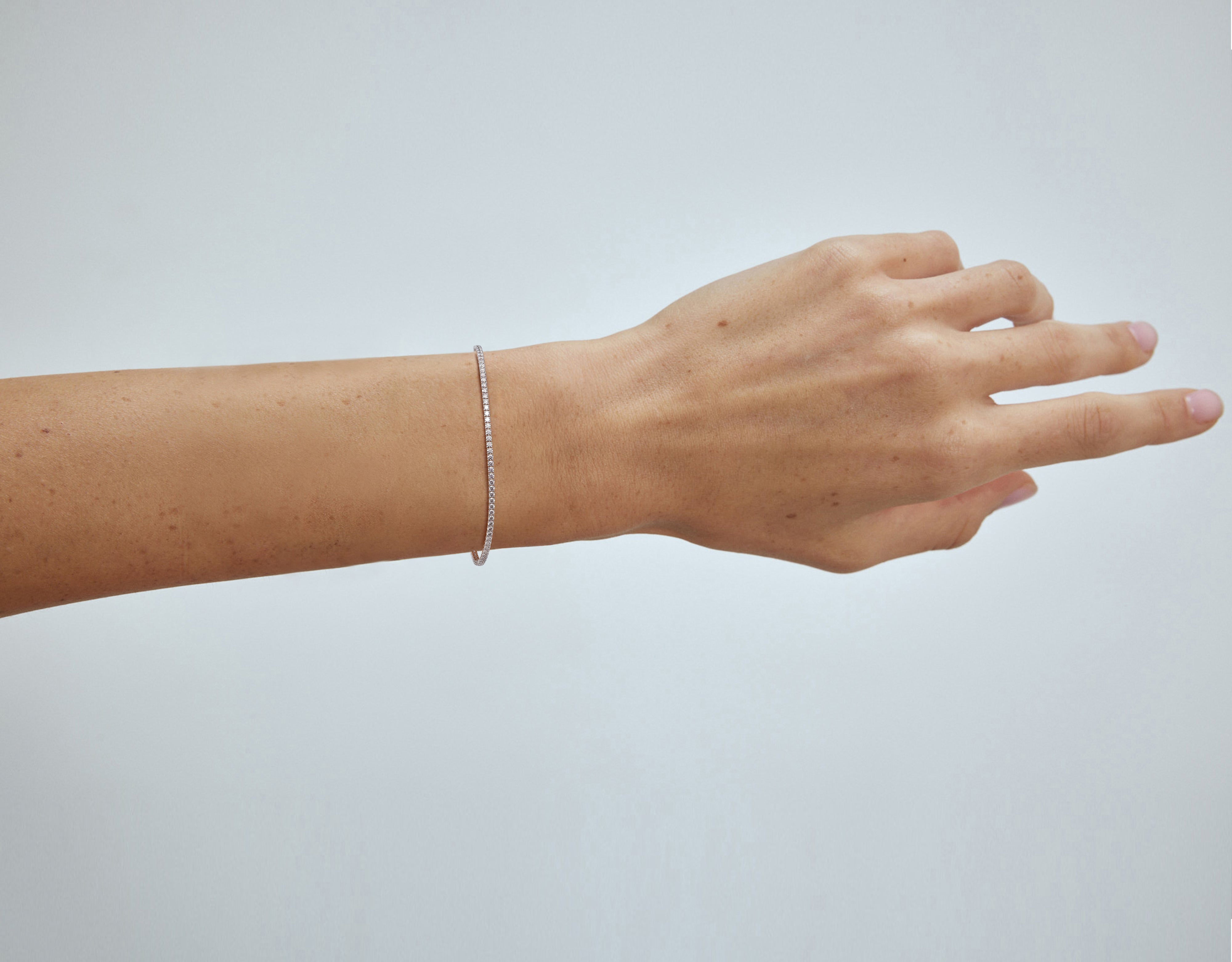 צמיד טניס 2 קראט יהלומים בזהב לבן 14K לנשים בעיצוב קלאסי ויוקרתי שמתאים ליום יום. מיוצר בעבודת יד 100% כחול לבן.