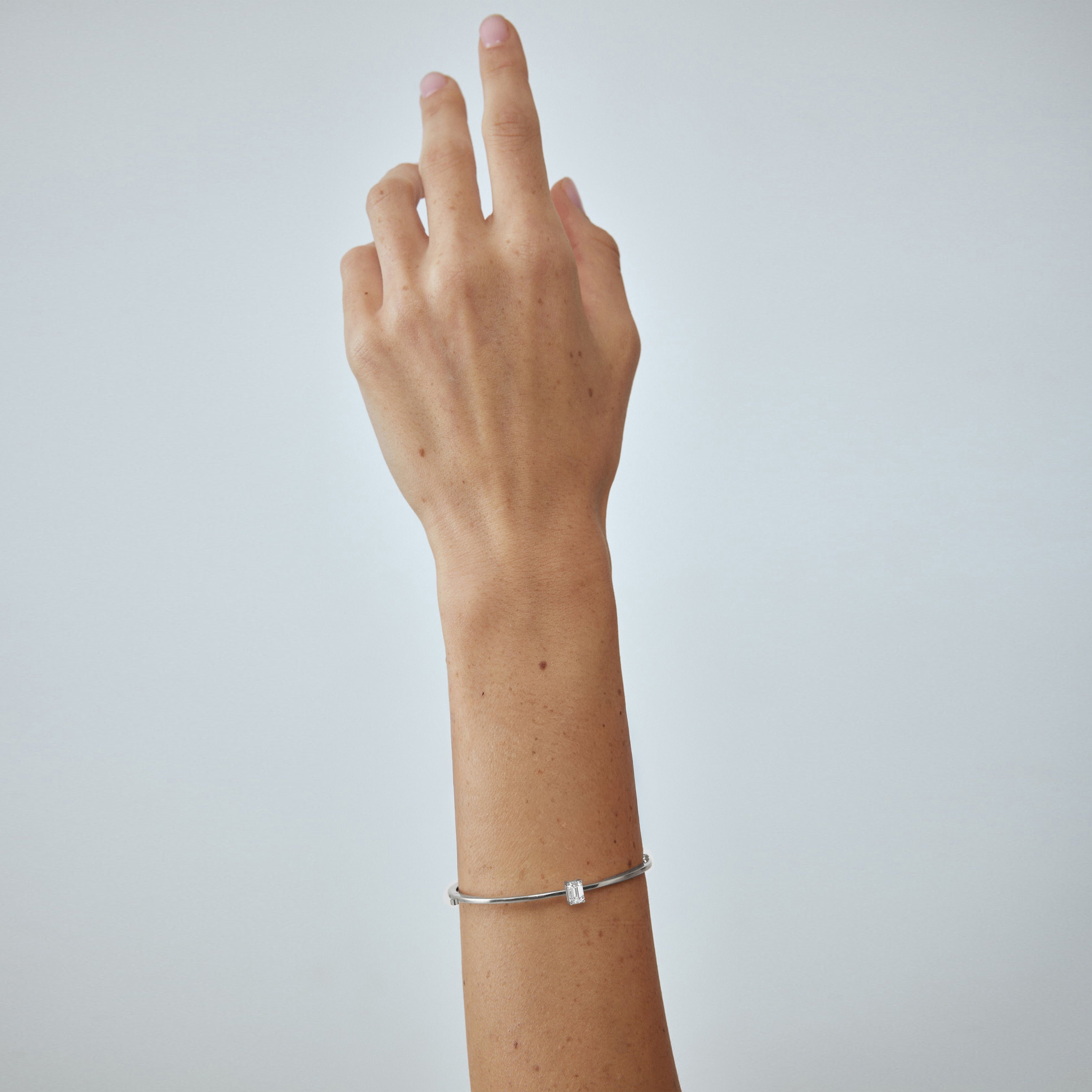 צמיד קשיח יהלום אמרלד 1 קראט בזהב לבן לנשים בעיצוב קלאסי ויוקרתי שמתאים ליום יום. מיוצר בעבודת יד 100% כחול לבן.