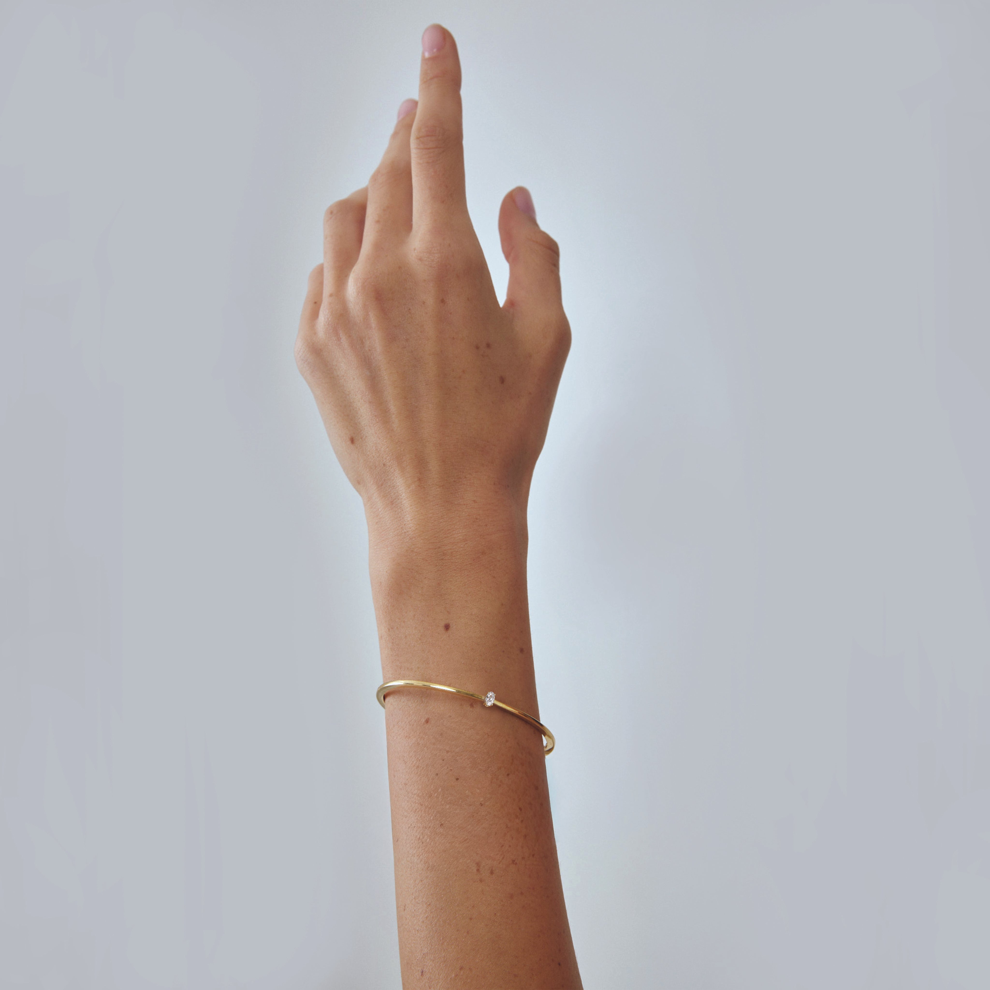 צמיד קשיח יהלום אובל 1/4 קראט בזהב צהוב לנשים בעיצוב קלאסי ויוקרתי שמתאים ליום יום. מיוצר בעבודת יד 100% כחול לבן.