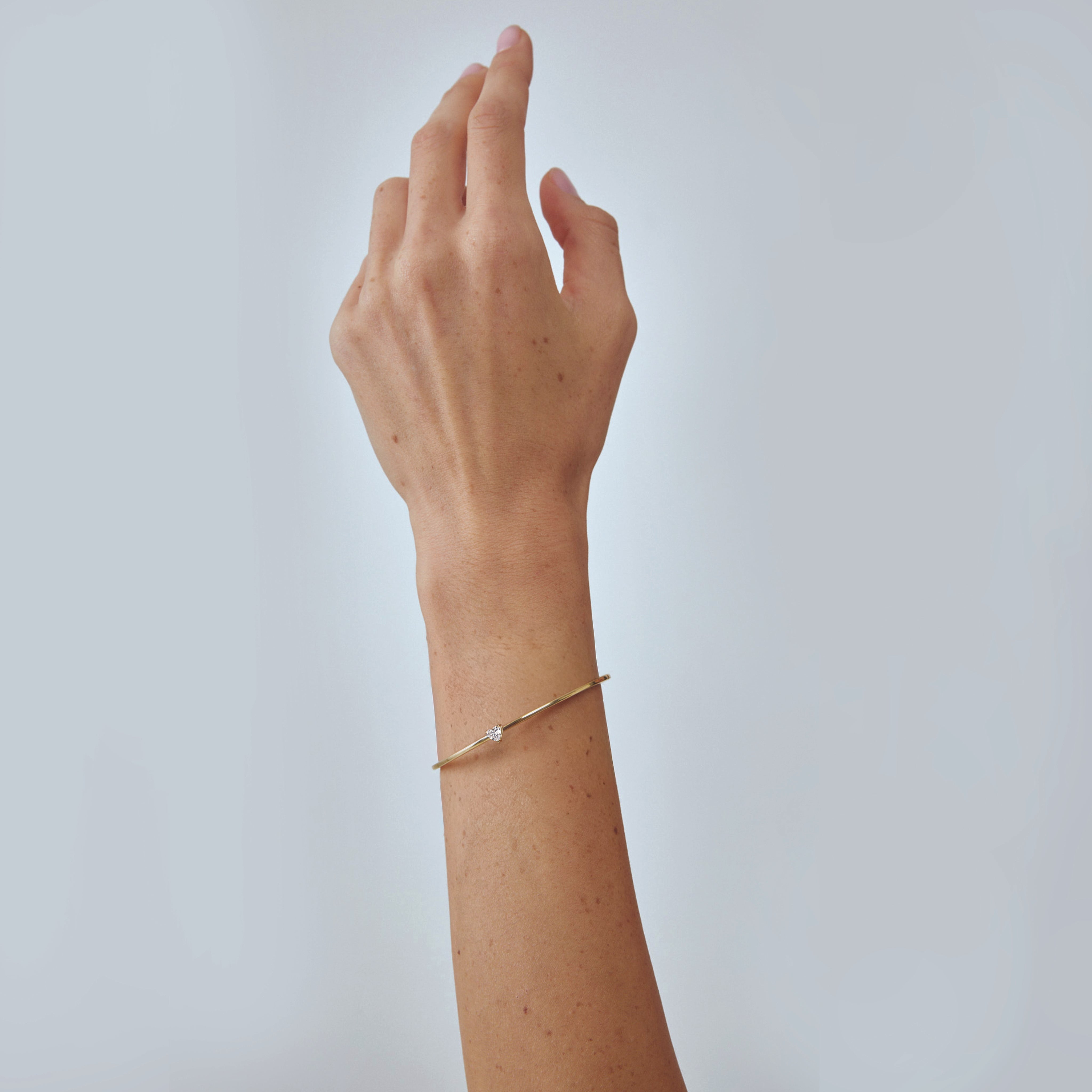 צמיד קשיח יהלום לב 1/2 קראט בזהב צהוב לנשים בעיצוב קלאסי ויוקרתי שמתאים ליום יום. מיוצר בעבודת יד 100% כחול לבן.