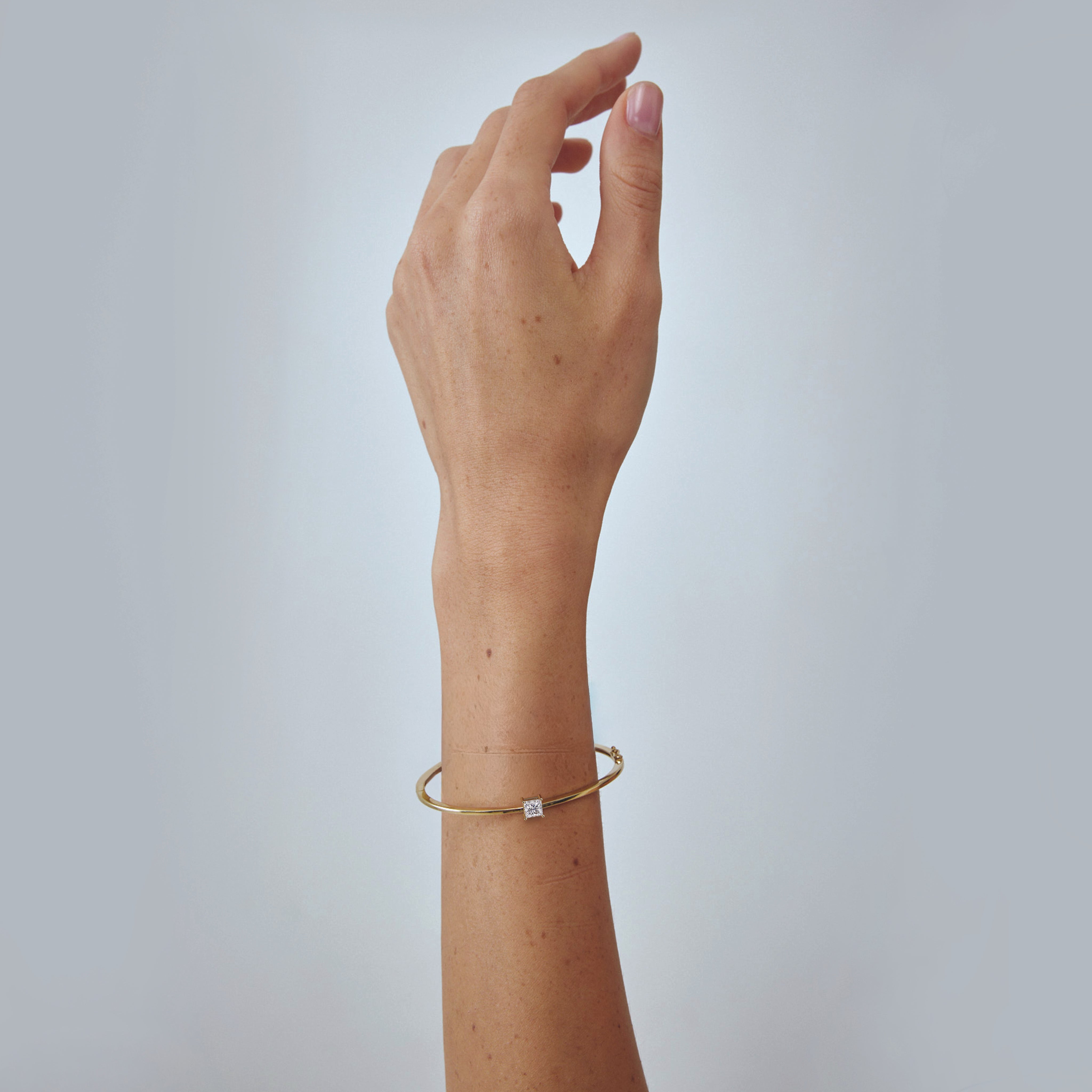 צמיד קשיח יהלום פרינסס 1 קראט בזהב צהוב לנשים בעיצוב קלאסי ויוקרתי שמתאים ליום יום. מיוצר בעבודת יד 100% כחול לבן.
