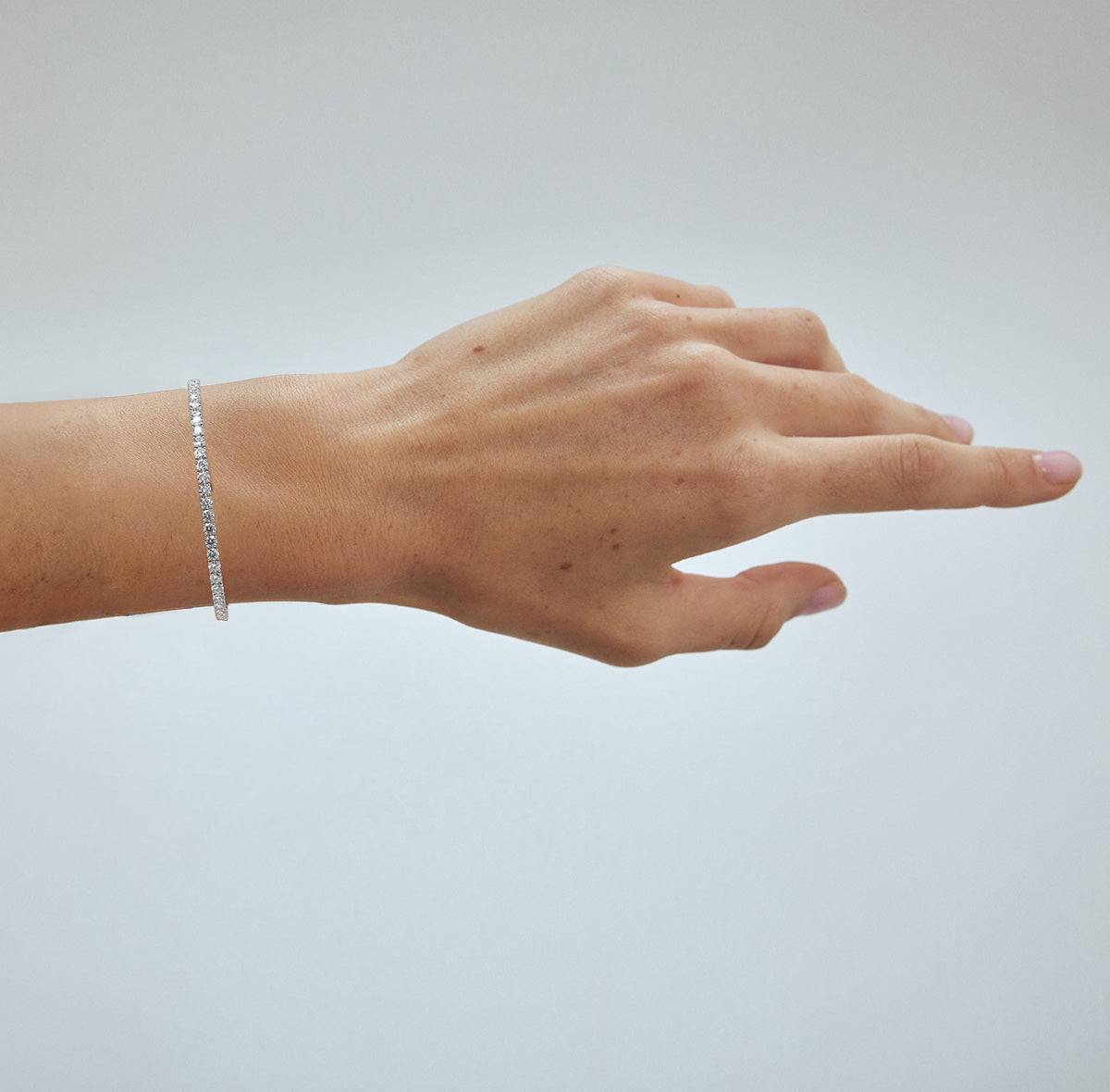 צמיד טניס 6 קראט יהלומים בזהב לבן 14K לנשים בעיצוב קלאסי ויוקרתי שמתאים ליום יום. מיוצר בעבודת יד 100% כחול לבן.