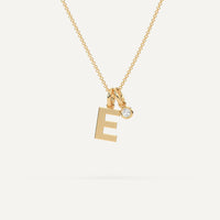 שרשרת אות E באנגלית מקולקציית שרשראות אותויות זהב הבלעדית שלנו. תליון אות הזהב מגיע בגודל כ1 ס״מ בזהב לבן או זהוב 14K לבחירה, יחד עם שרשרת זהב תואמת באורך משתנה של 40/45 ס״מ. ניתן להוסיף עוד ניצוץ עם תליון יהלום מעבדה או טבעי בגודל של 0.05 קראט (3מ״מ).