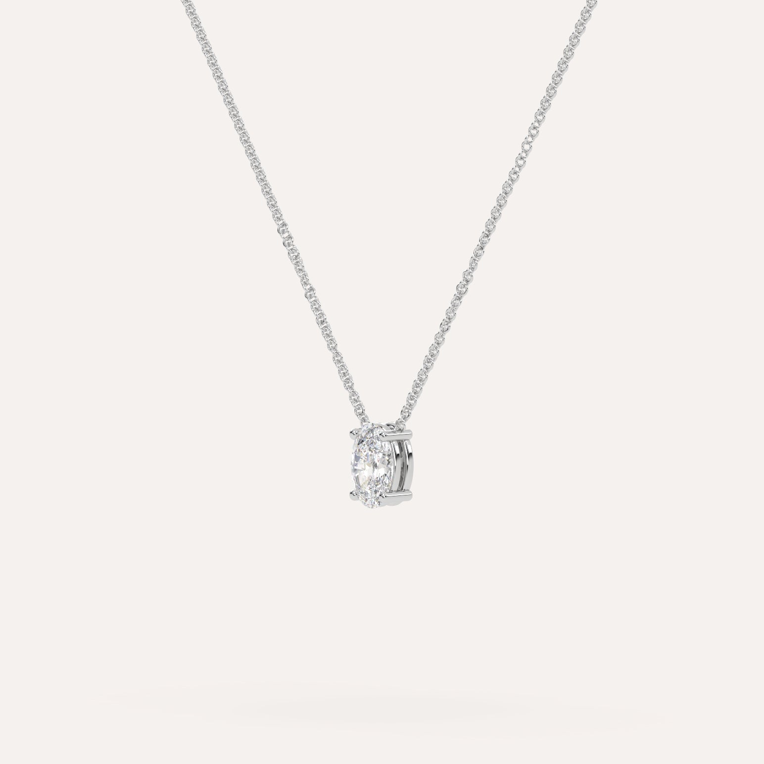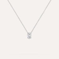 שרשרת יהלום מרחף המשובצת יהלום מעבדה 1/2 קראט אובל בזהב לבן 14K. השרשרת מגיעה בעיצוב קלאסי, מיוצרת בעבודת יד כחול לבן.
