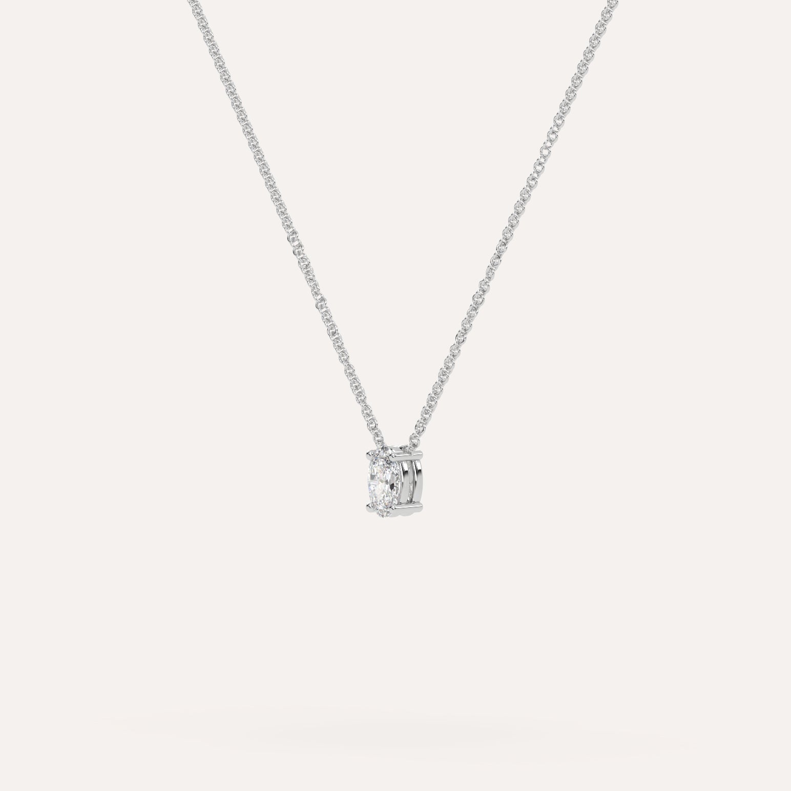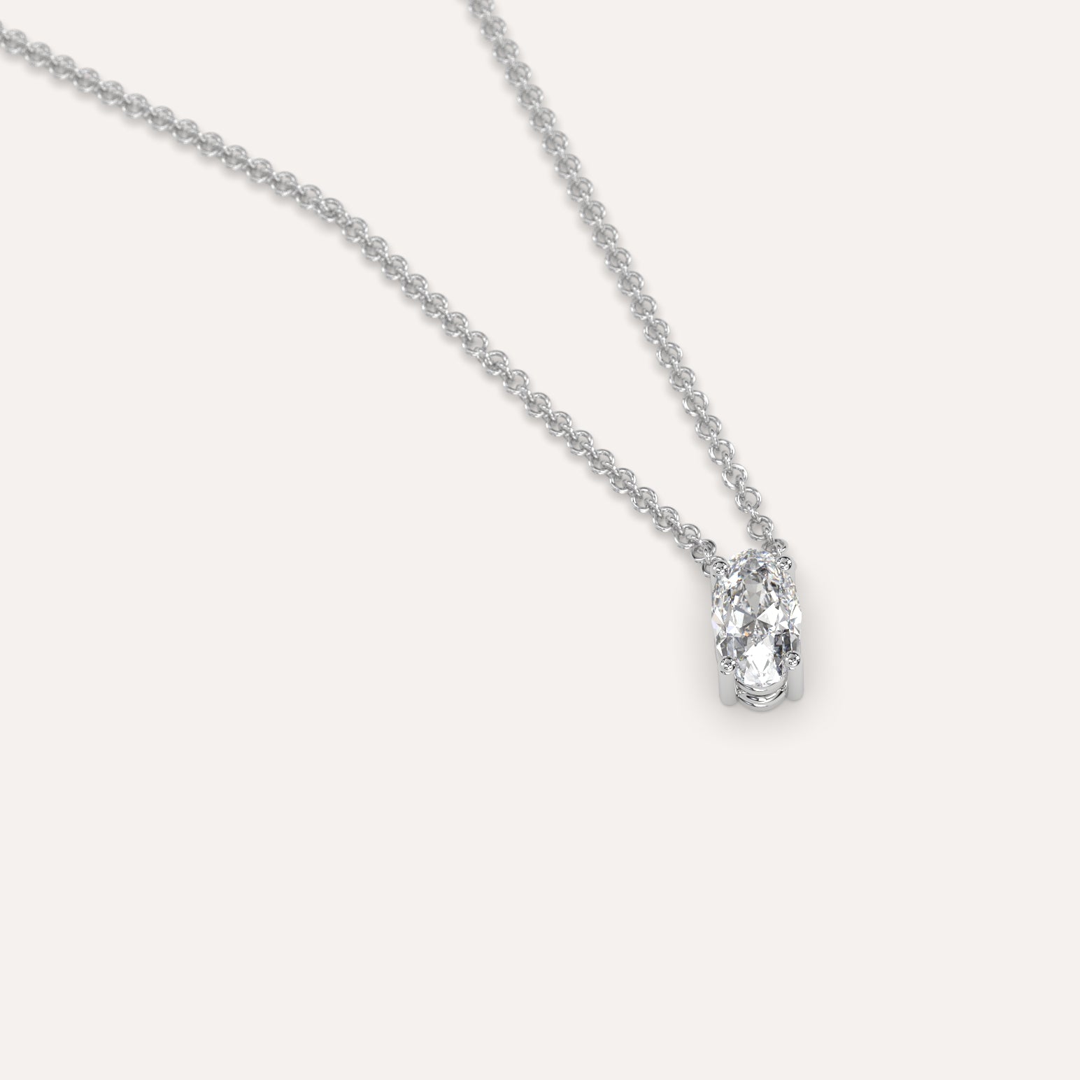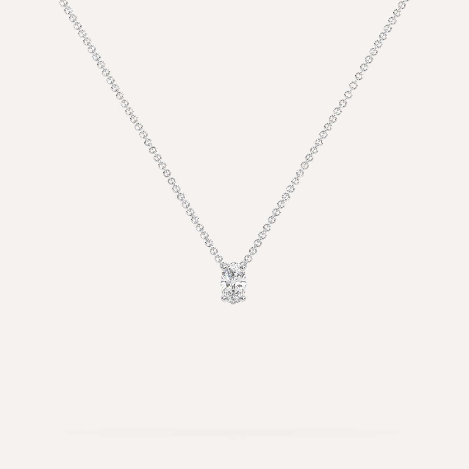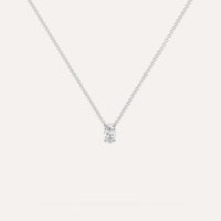 שרשרת יהלום מרחף המשובצת יהלום מעבדה 1/4 קראט אובל בזהב לבן 14K. השרשרת מגיעה בעיצוב קלאסי, מיוצרת בעבודת יד כחול לבן.