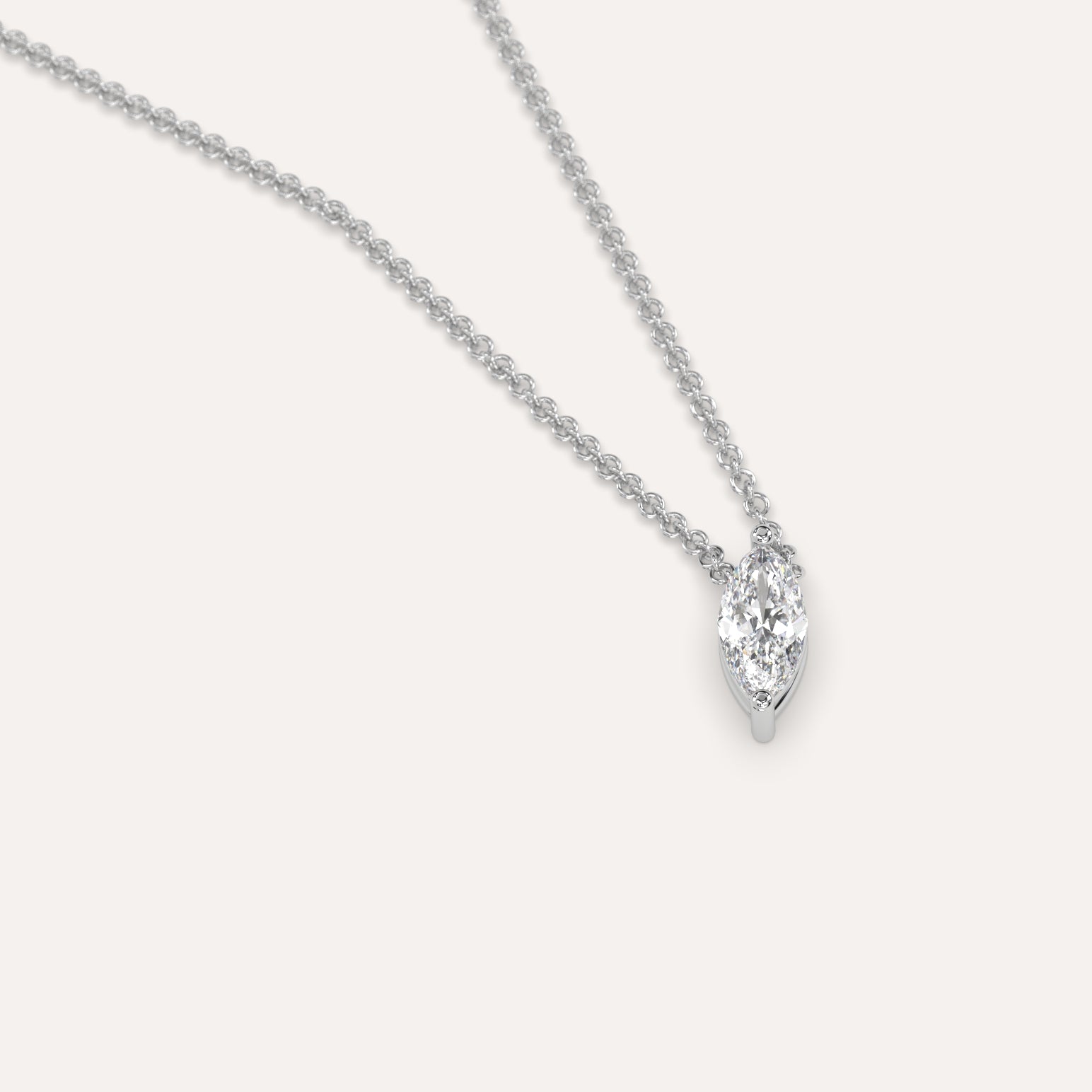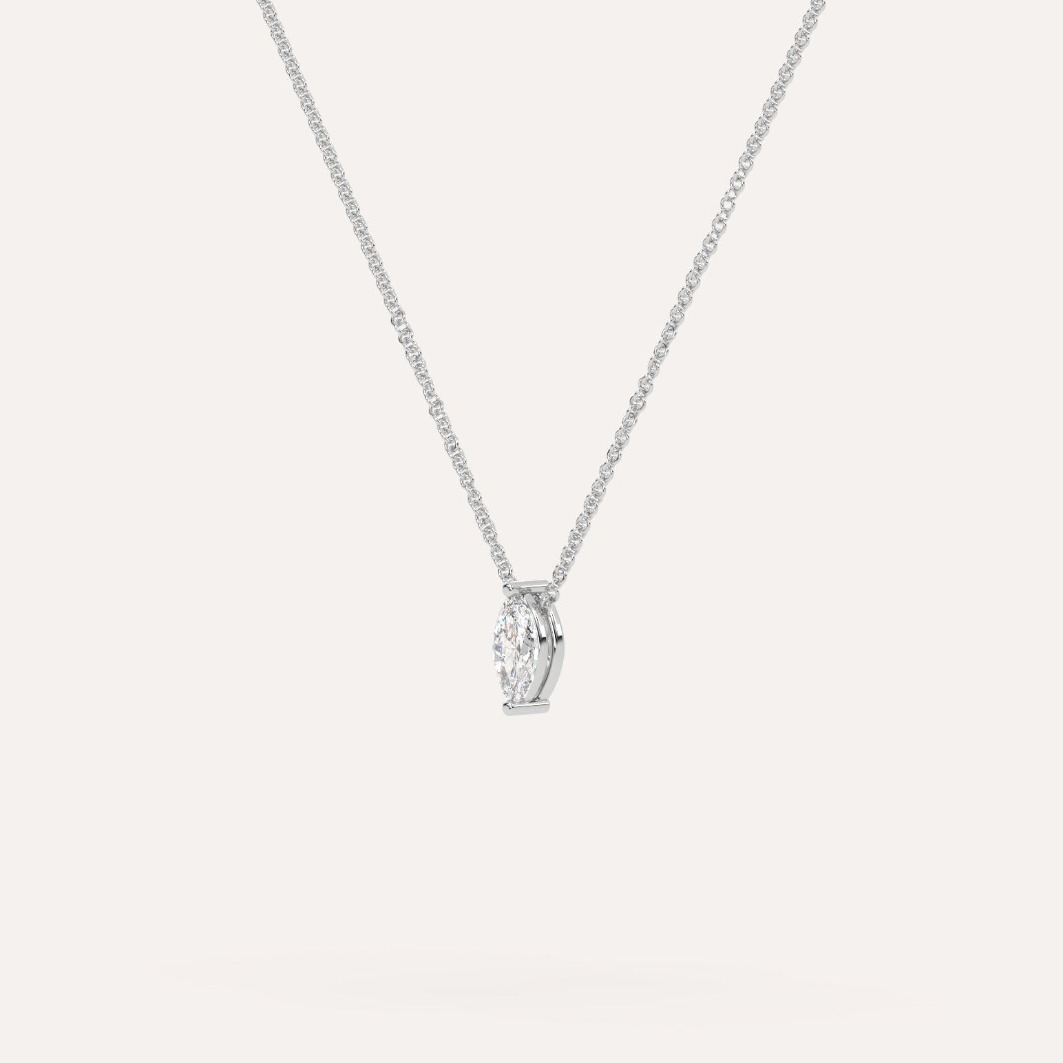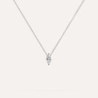 שרשרת יהלום מרחף המשובצת יהלום מעבדה 1/4 קראט מרקיזה בזהב לבן 14K. השרשרת מגיעה בעיצוב קלאסי, מיוצרת בעבודת יד כחול לבן.