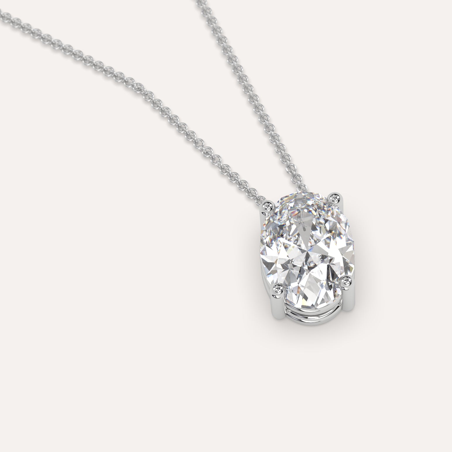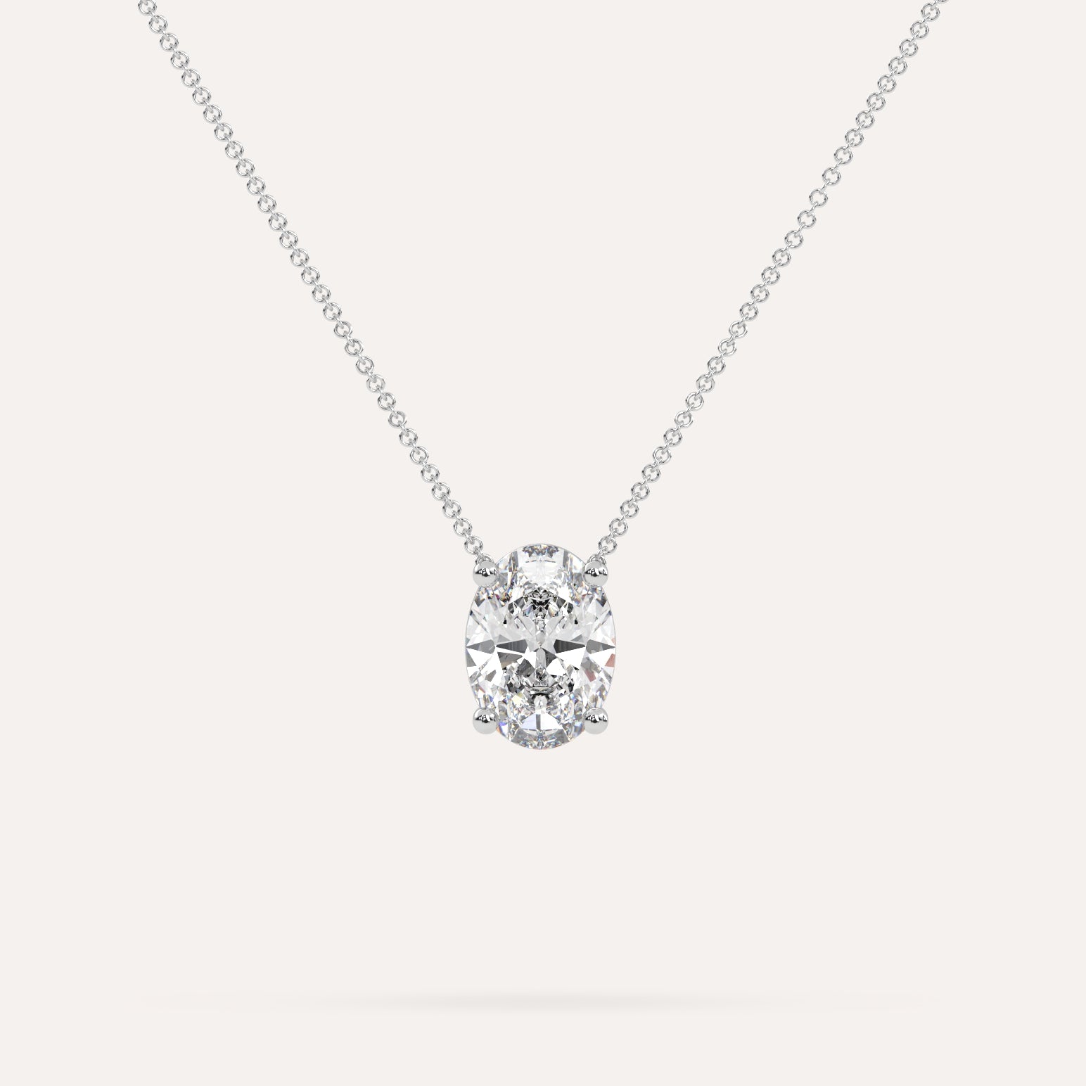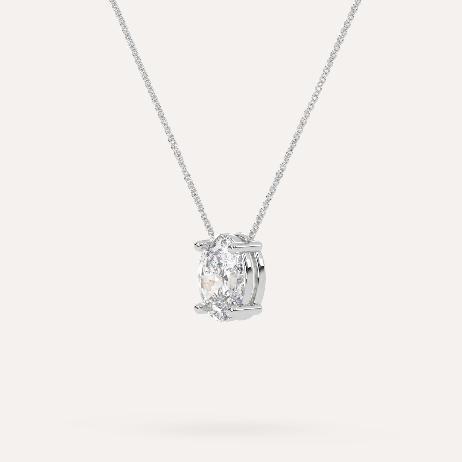 שרשרת יהלום מרחף המשובצת יהלום מעבדה 3 קראט אובל בזהב לבן 14K. השרשרת מגיעה בעיצוב קלאסי, מיוצרת בעבודת יד כחול לבן.