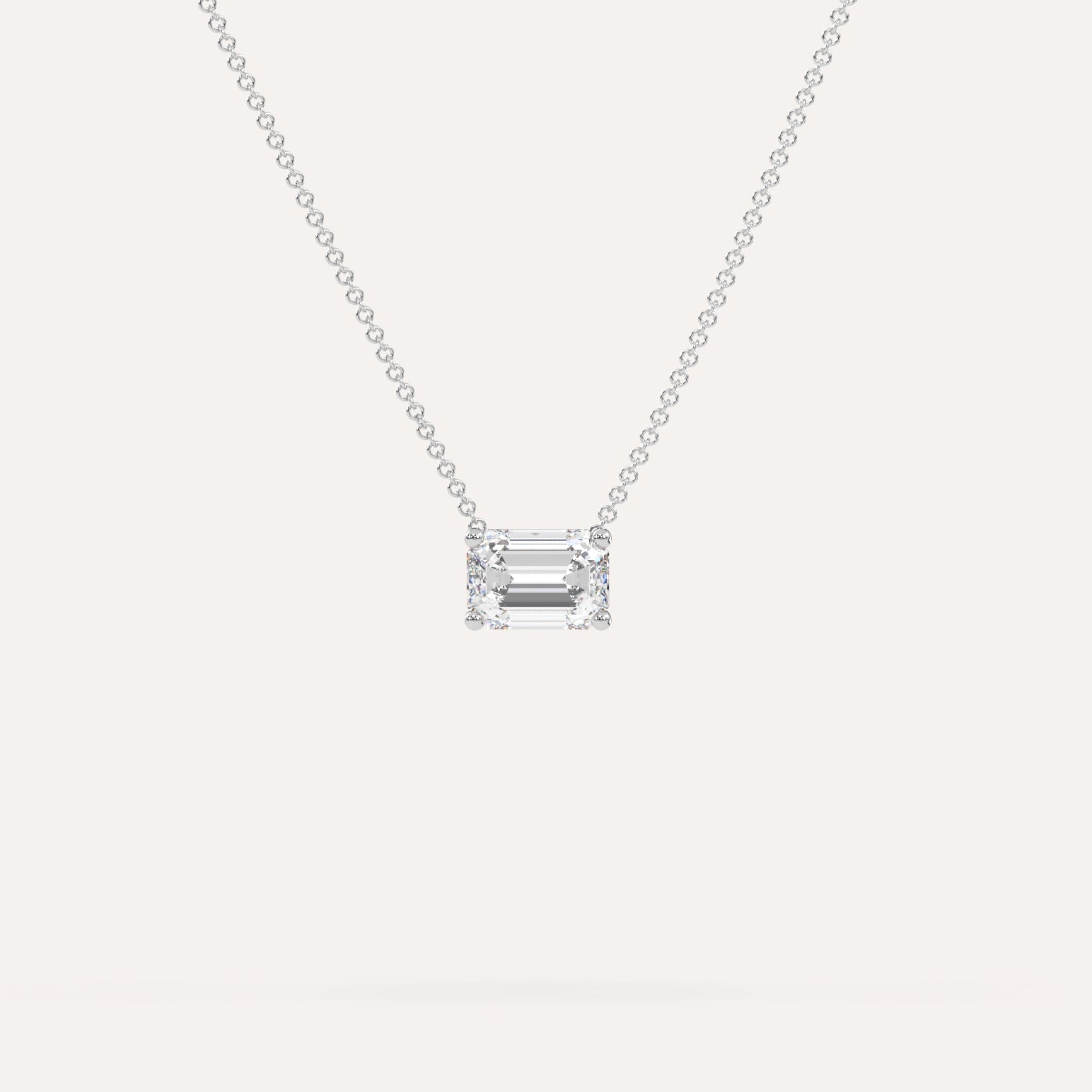 שרשרת יהלום מרחף המשובצת יהלום מעבדה 1 קראט אמרלד בזהב לבן 14K. השרשרת מגיעה בעיצוב קלאסי, מיוצרת בעבודת יד כחול לבן.