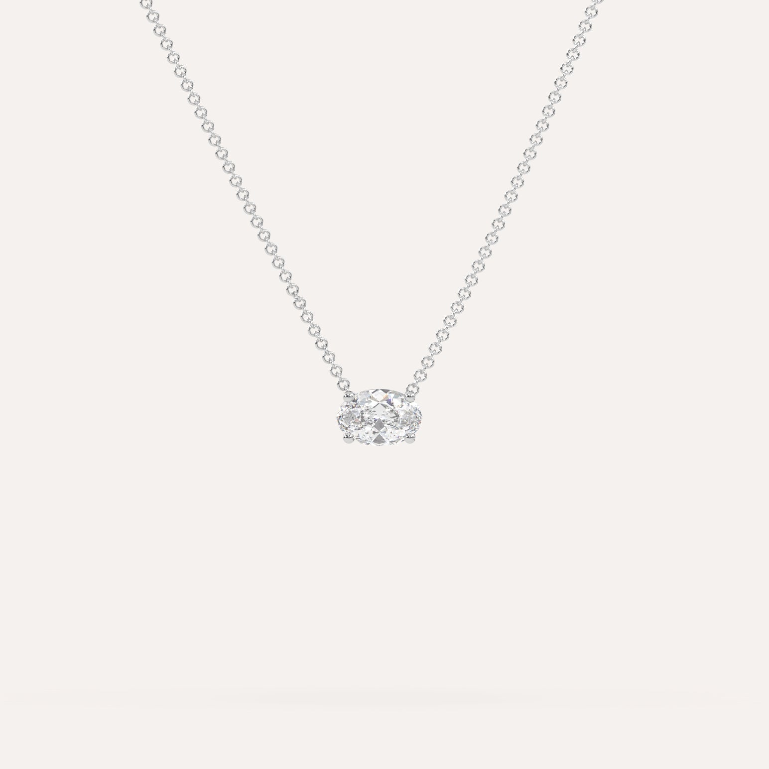 שרשרת יהלום מרחף המשובצת יהלום מעבדה 1/2 קראט אובל בזהב לבן 14K. השרשרת מגיעה בעיצוב קלאסי, מיוצרת בעבודת יד כחול לבן.