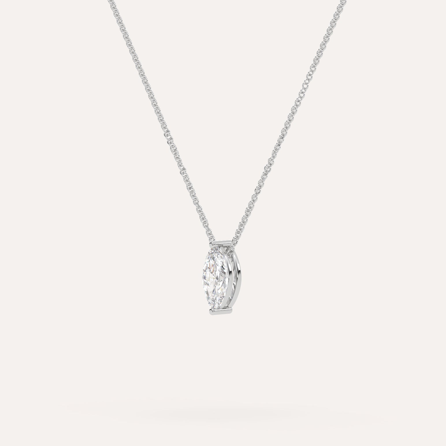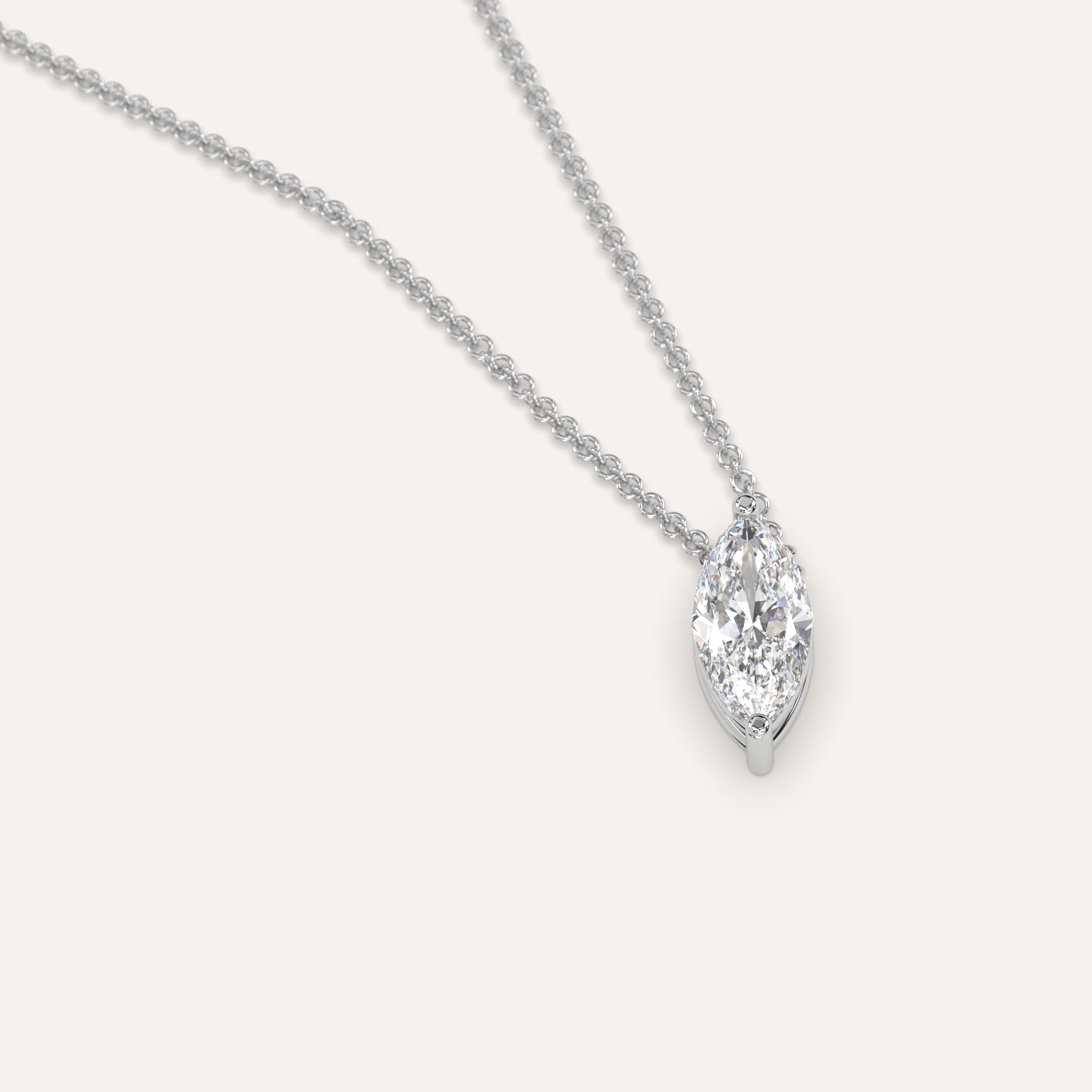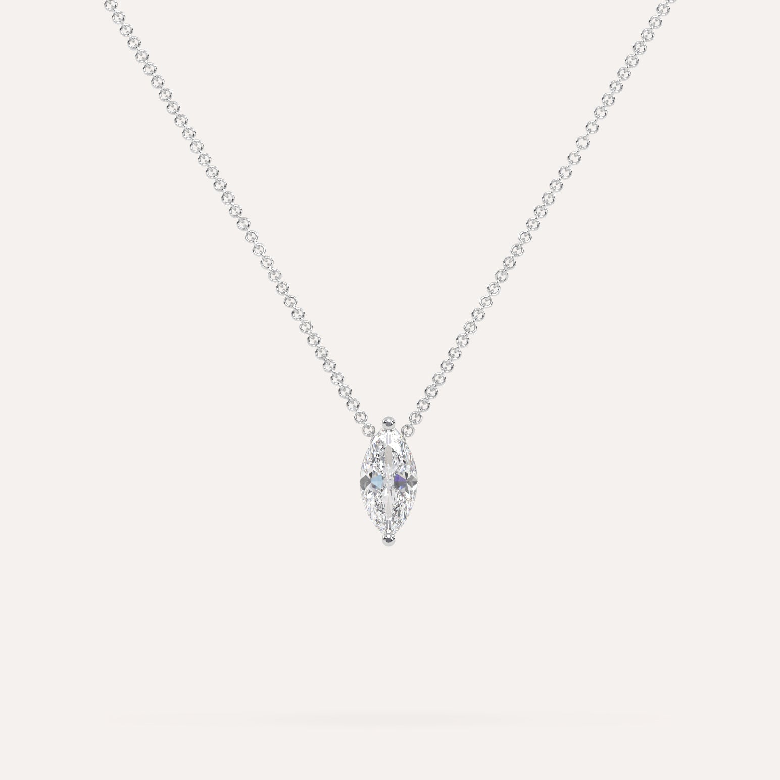 שרשרת יהלום מרחף המשובצת יהלום טבעי 1/2 קראט מרקיזה בזהב לבן 14K. השרשרת מגיעה בעיצוב קלאסי, מיוצרת בעבודת יד כחול לבן.