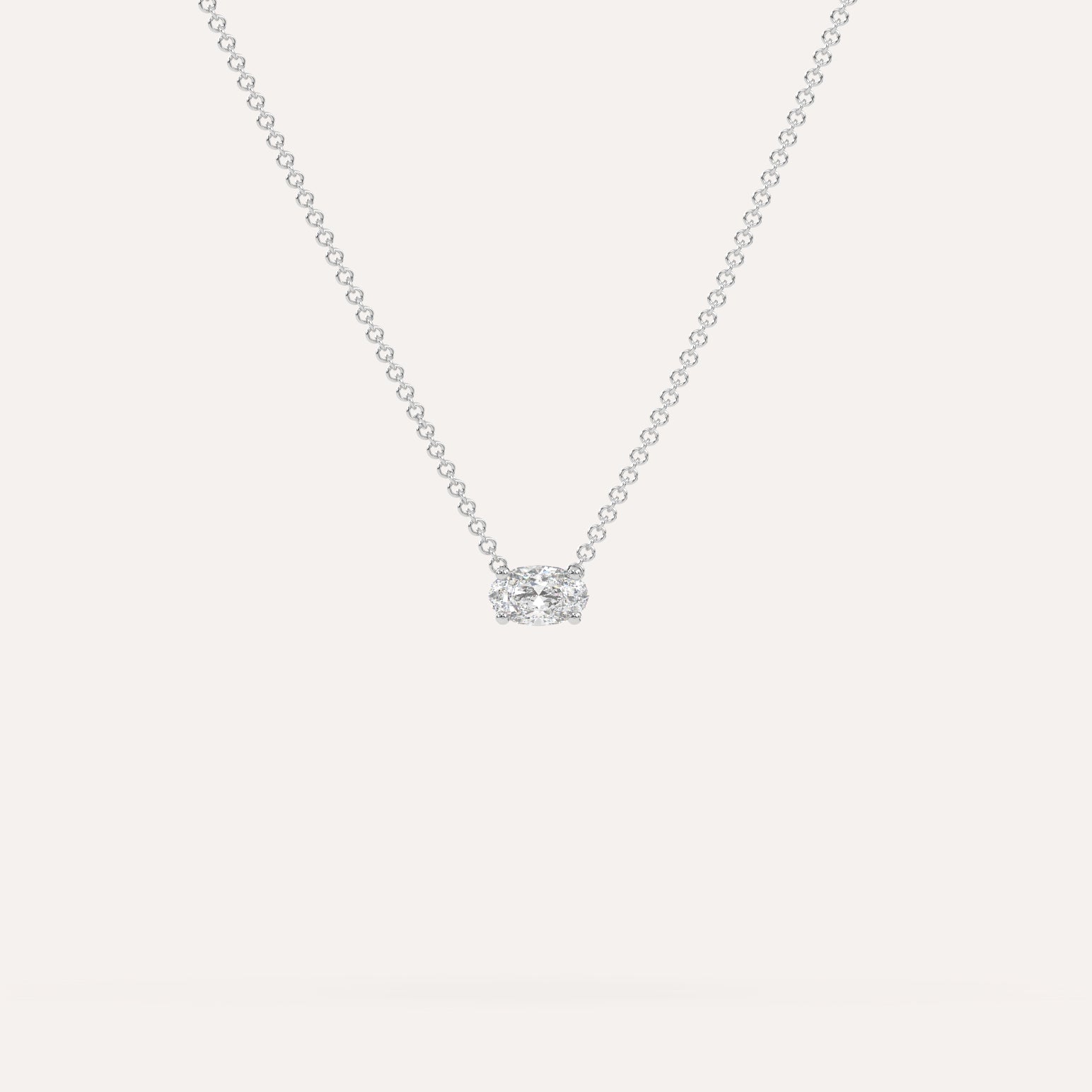 שרשרת יהלום מרחף המשובצת יהלום מעבדה 1/4 קראט אובל בזהב לבן 14K. השרשרת מגיעה בעיצוב קלאסי, מיוצרת בעבודת יד כחול לבן.
