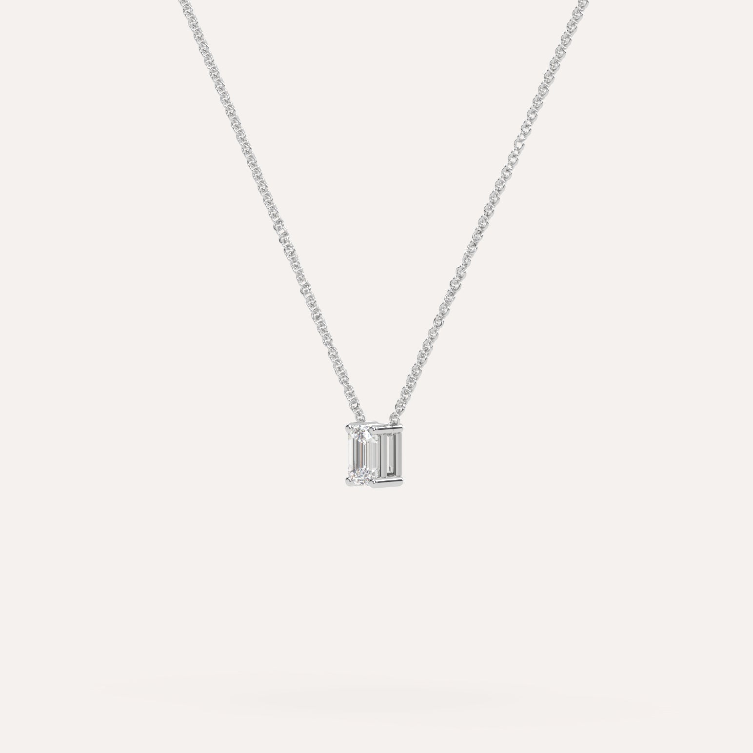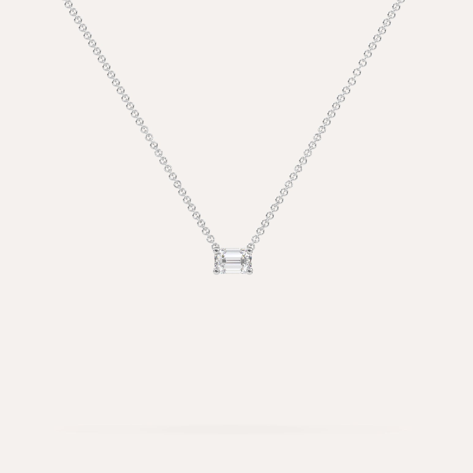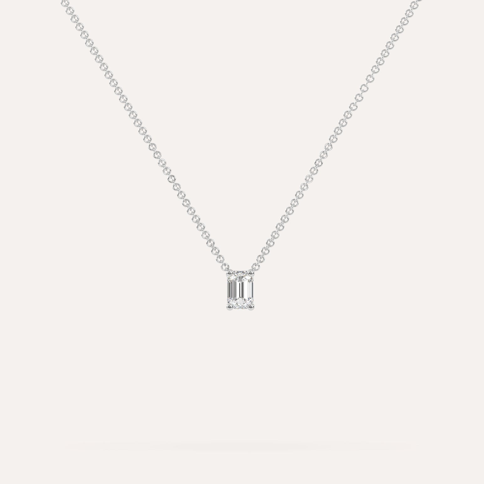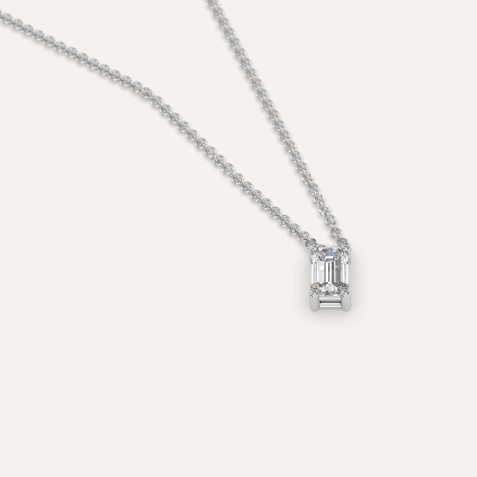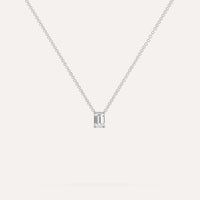 שרשרת יהלום מרחף המשובצת יהלום טבעי 1/4 קראט אמרלד בזהב לבן 14K. השרשרת מגיעה בעיצוב קלאסי, מיוצרת בעבודת יד כחול לבן.