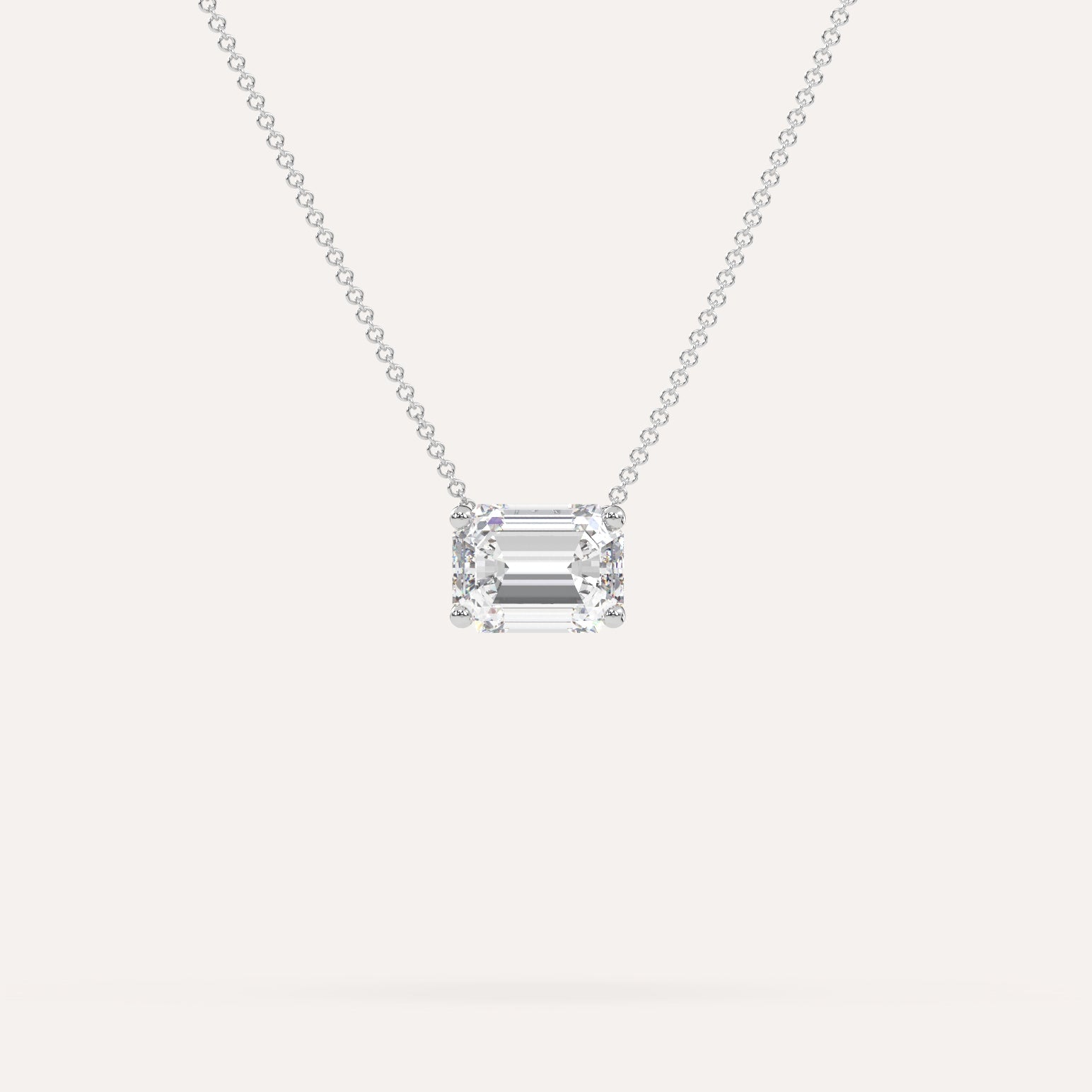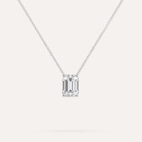 שרשרת יהלום מרחף המשובצת יהלום טבעי 2 קראט אמרלד בזהב לבן 14K. השרשרת מגיעה בעיצוב קלאסי, מיוצרת בעבודת יד כחול לבן.