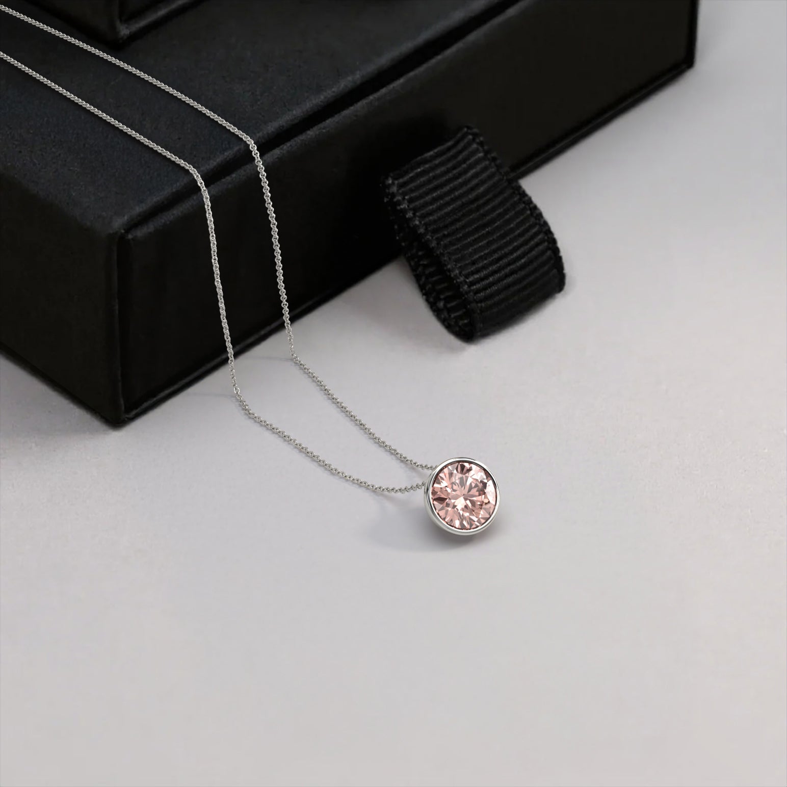 שרשרת יהלום ורוד מרחף עם מסגרת זהב, 1/2 קראט עגול