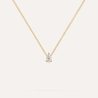 שרשרת יהלום מרחף המשובצת יהלום מעבדה 1/2 קראט טיפה בזהב צהוב 14K. השרשרת מגיעה בעיצוב קלאסי, מיוצרת בעבודת יד כחול לבן.