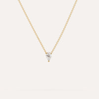 שרשרת יהלום מרחף המשובצת יהלום מעבדה 1/4 קראט טיפה בזהב צהוב 14K. השרשרת מגיעה בעיצוב קלאסי, מיוצרת בעבודת יד כחול לבן.