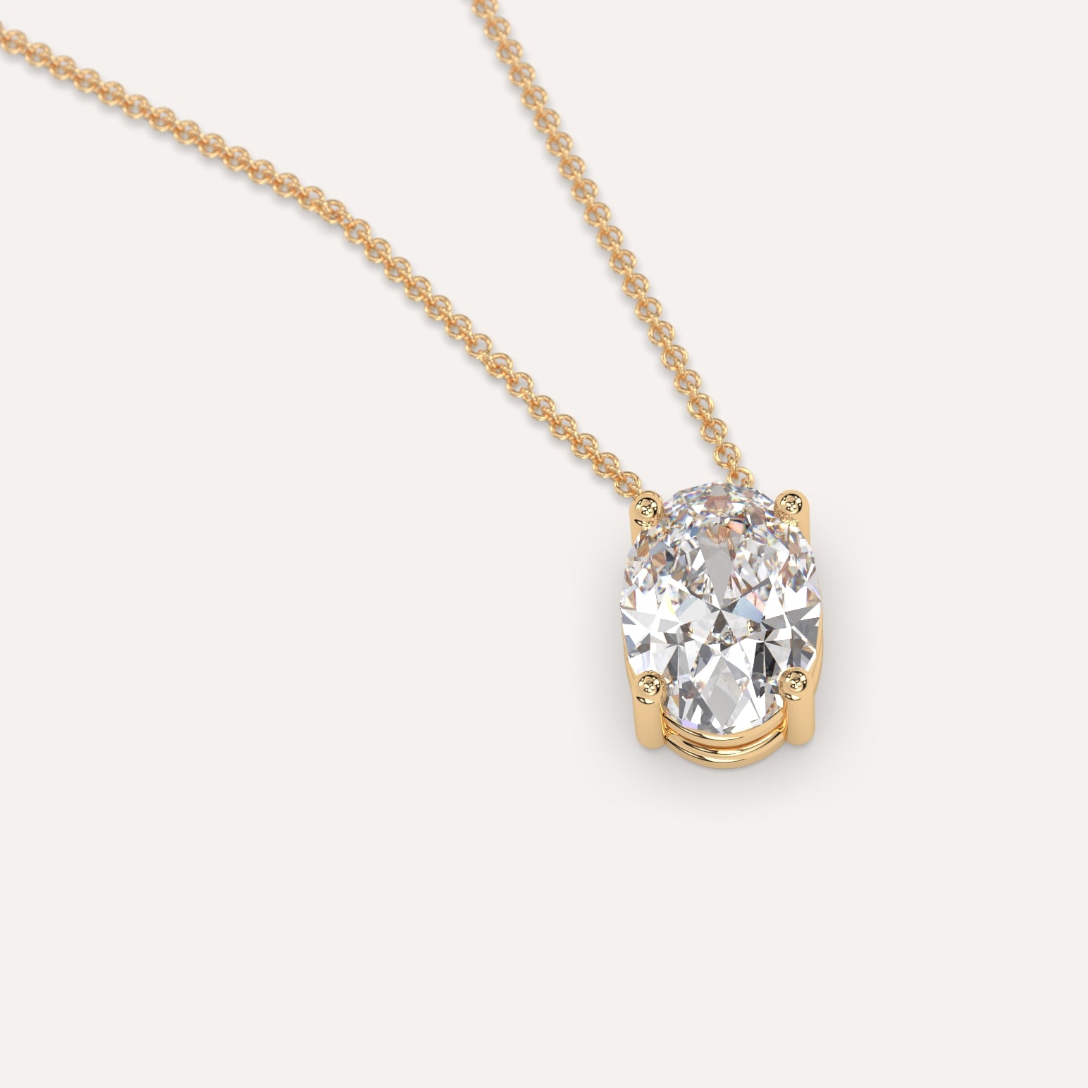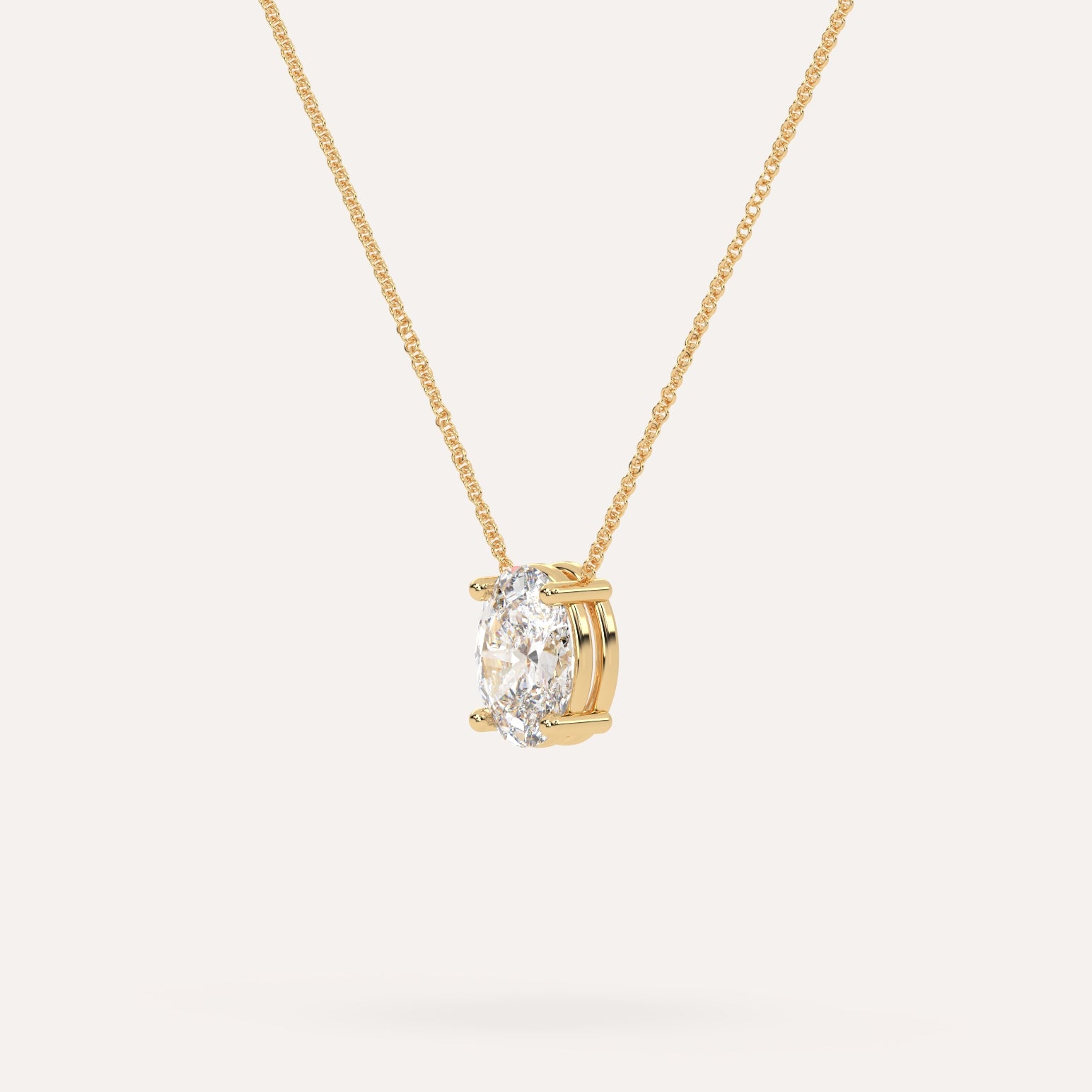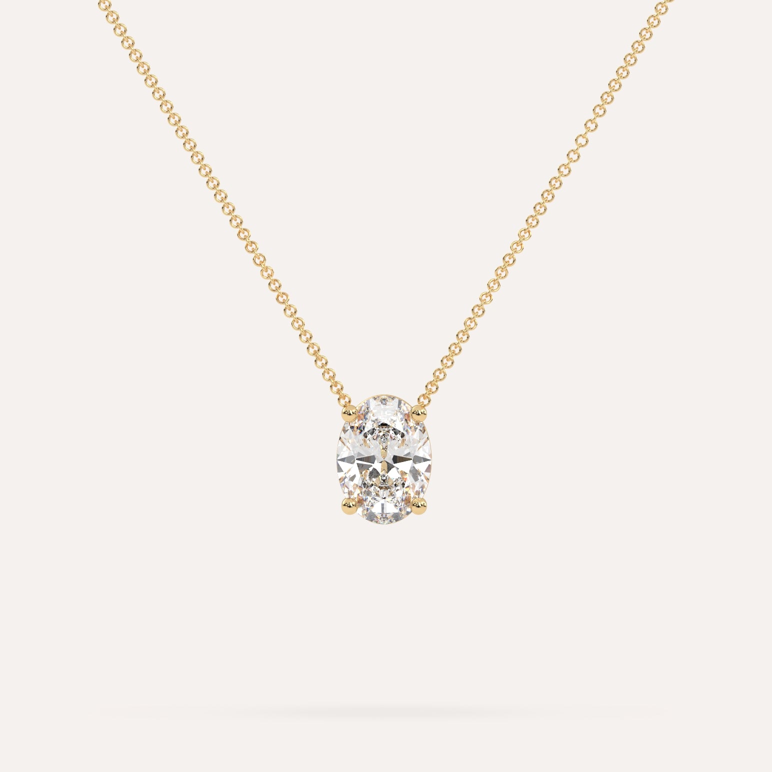 שרשרת יהלום מרחף המשובצת יהלום מעבדה 2 קראט אובל בזהב צהוב 14K. השרשרת מגיעה בעיצוב קלאסי, מיוצרת בעבודת יד כחול לבן.