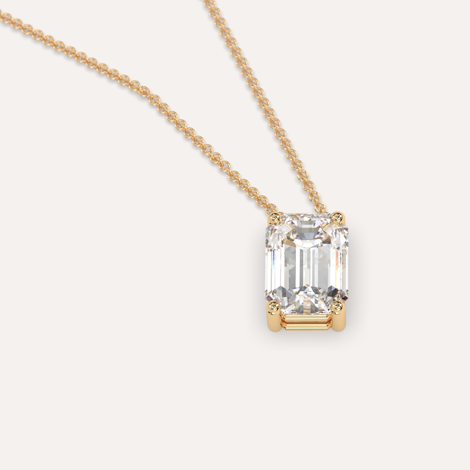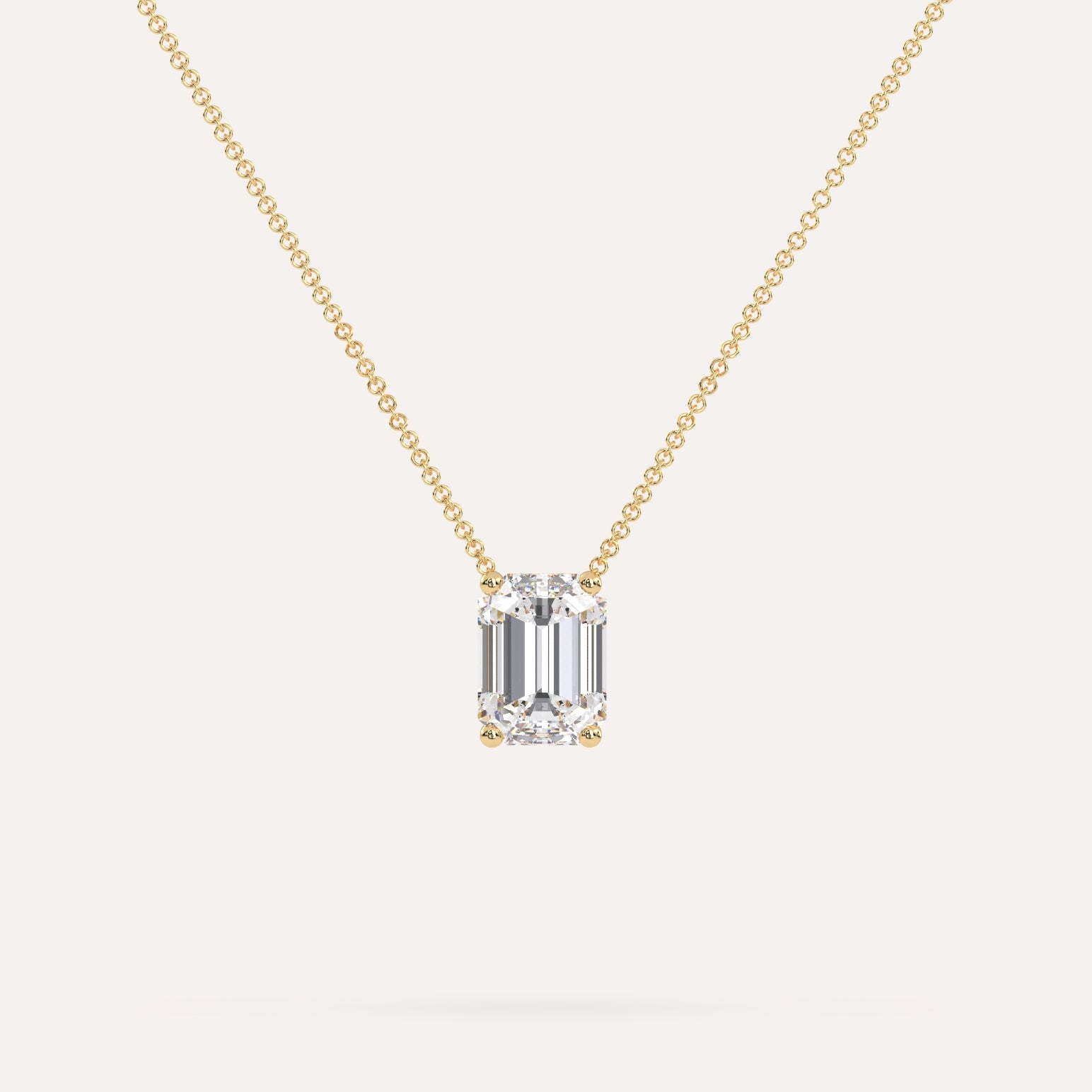שרשרת יהלום מרחף המשובצת יהלום מעבדה 2 קראט אמרלד בזהב צהוב 14K. השרשרת מגיעה בעיצוב קלאסי, מיוצרת בעבודת יד כחול לבן.