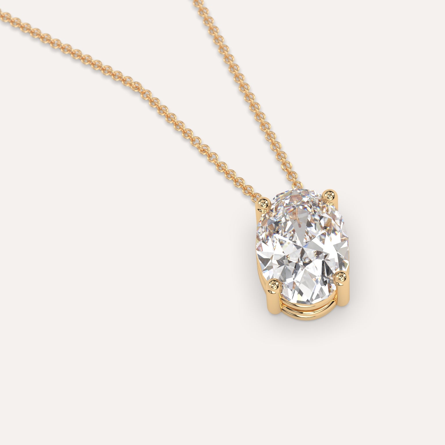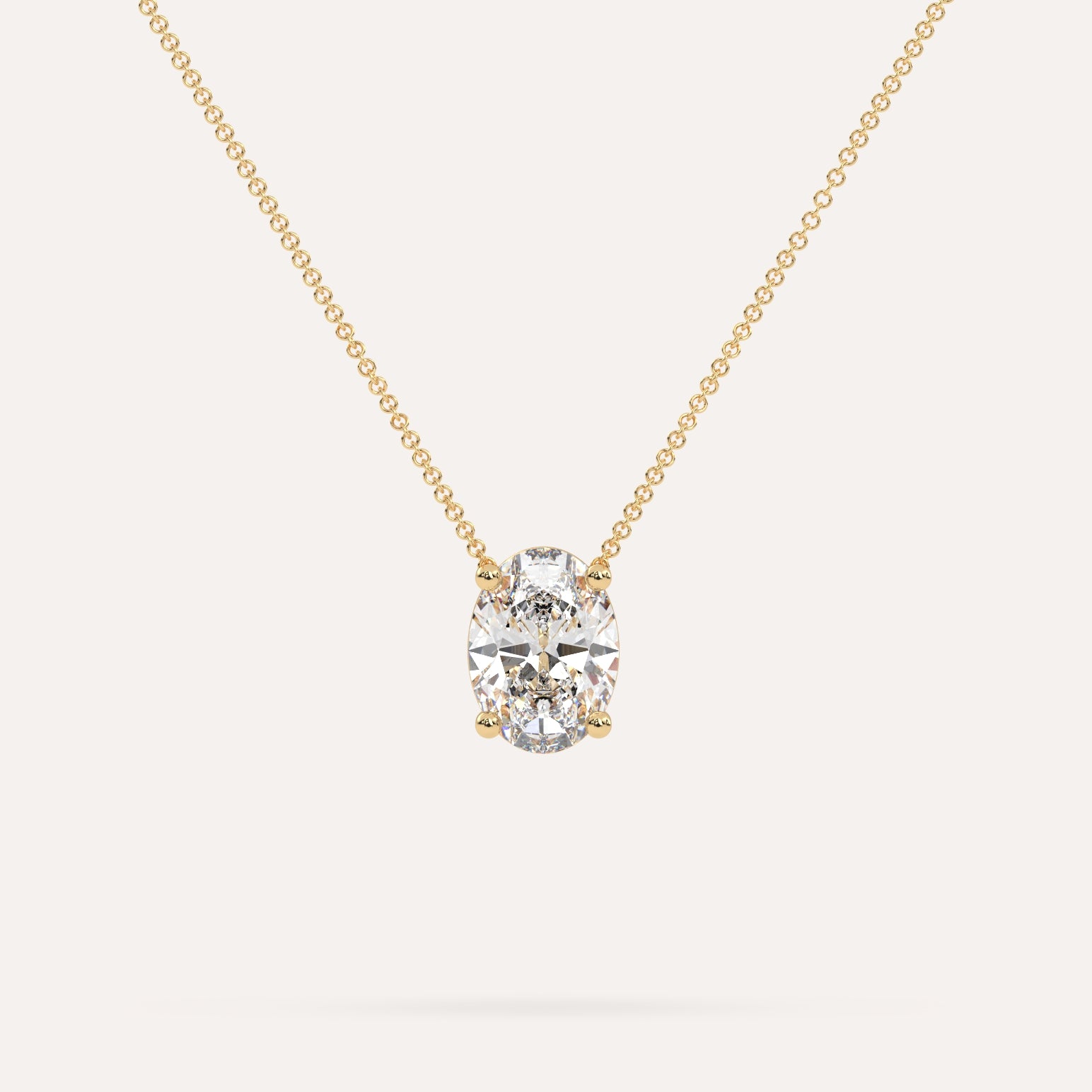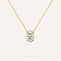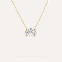 שרשרת יהלום מרחף המשובצת יהלום מעבדה 3 קראט אובל בזהב צהוב 14K. השרשרת מגיעה בעיצוב קלאסי, מיוצרת בעבודת יד כחול לבן.