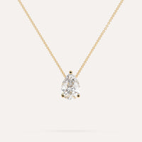 שרשרת יהלום מרחף המשובצת יהלום מעבדה 3 קראט טיפה בזהב צהוב 14K. השרשרת מגיעה בעיצוב קלאסי, מיוצרת בעבודת יד כחול לבן.