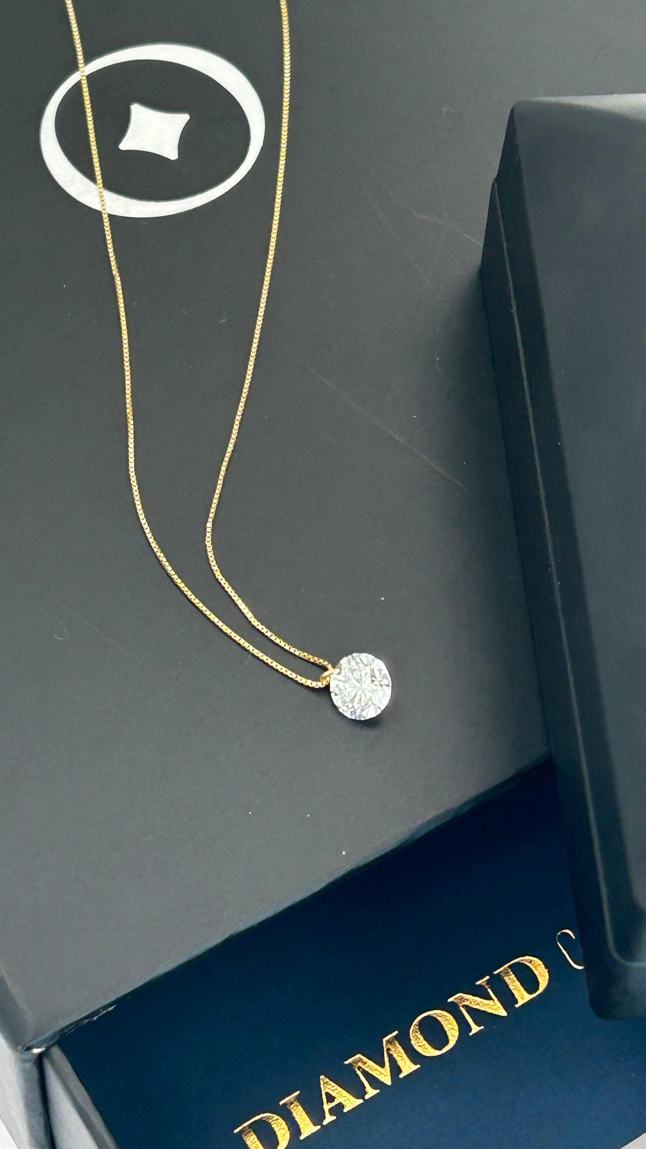 שרשרת יהלום מעבדה מרחף 1 קראט עגול בזהב לבן 14K. השרשרת בסגנון ונציה באורך 42 ס״מ ומגיעה בעיצוב ייחודי ללא בית זהב אלא השחלה דרך היהלום למראה מינימליסטי ונקי - יהלום מרחף אמיתי!