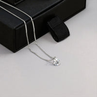 שרשרת יהלום מעבדה מרחף 1/2 קראט עגול בזהב לבן 14K. השרשרת בסגנון ונציה באורך 42 ס״מ ומגיעה בעיצוב ייחודי ללא בית זהב אלא השחלה דרך היהלום למראה מינימליסטי ונקי - יהלום מרחף אמיתי!