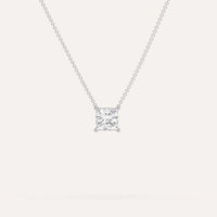 שרשרת יהלום מרחף המשובצת יהלום מעבדה 1 קראט פרינסס בזהב לבן 14K. השרשרת מגיעה בעיצוב קלאסי, מיוצרת בעבודת יד כחול לבן.